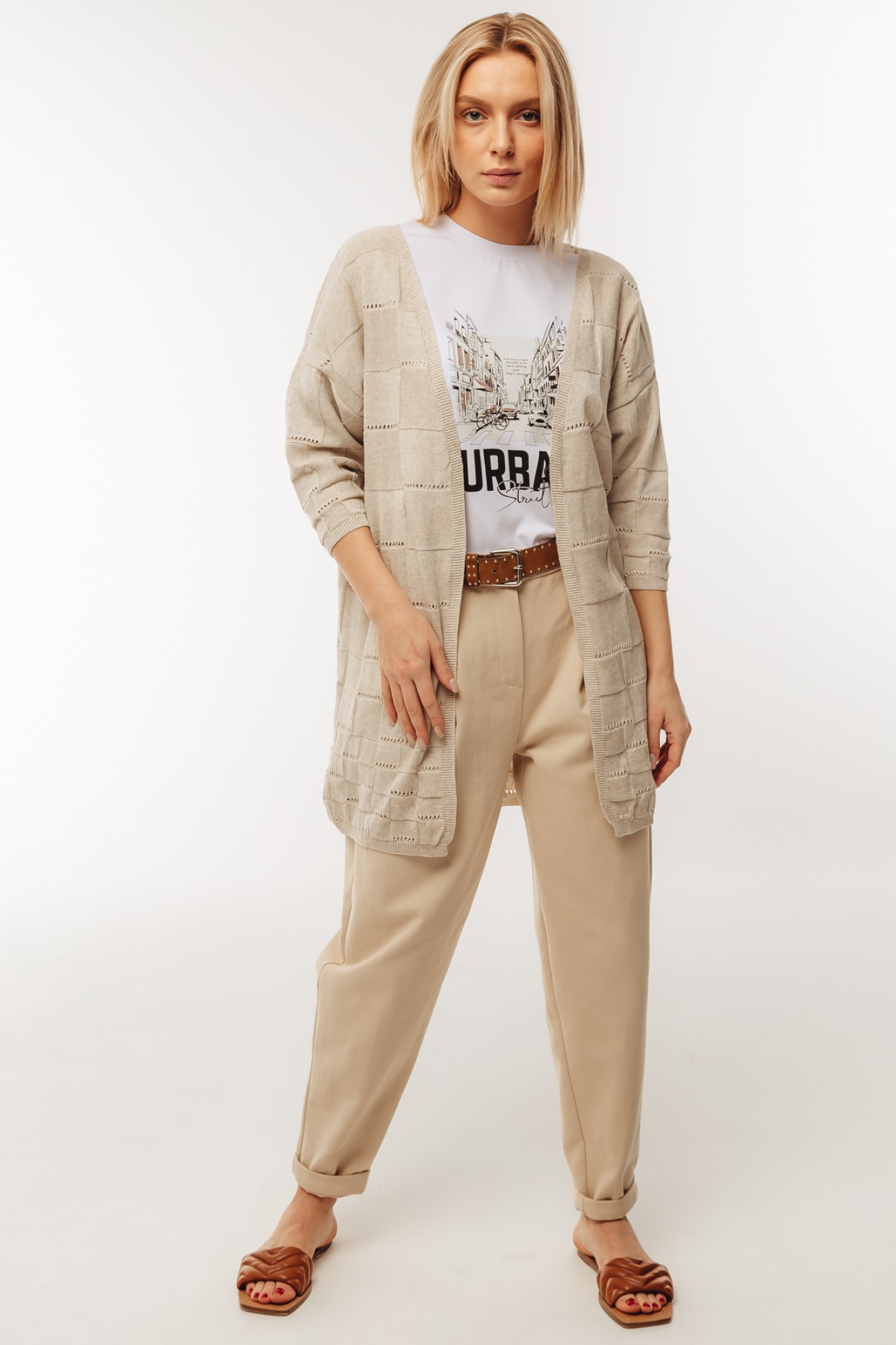 4. Фасон, напоминающий пальто. Кардиган дополняется поясом, пуговицами. Но выпускаются варианты и без застежек.