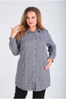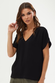 Блузка женская полуприлегающего силуэта с втачными одношовными рукавами из ткани-компаньона. По низу рукавов притачная манжета с петлей и пуговицей. Перед с нагрудными вытачками, выходящие из бокового шва. Воротник рубашечного типа на притачной стойке. Застежка центральная, с притачной планкой, застегивающаяся на петли и пуговицы. Спинка с кокеткой выше линии лопаток.