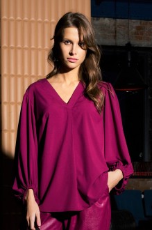 Блузка женская из лёгкой хлопковой ткани, прямого силуэта. Оригинальна в исполнении с художественной вышивкой по рукавам. По центру переда планка на 11 петель и столько же пуговиц. Рукав реглан, по низу рукава манжета присборена на эластичную тесьму (венгерку) для фиксации. Горловина округлой формы, по горловине изделия декоративные защипы .