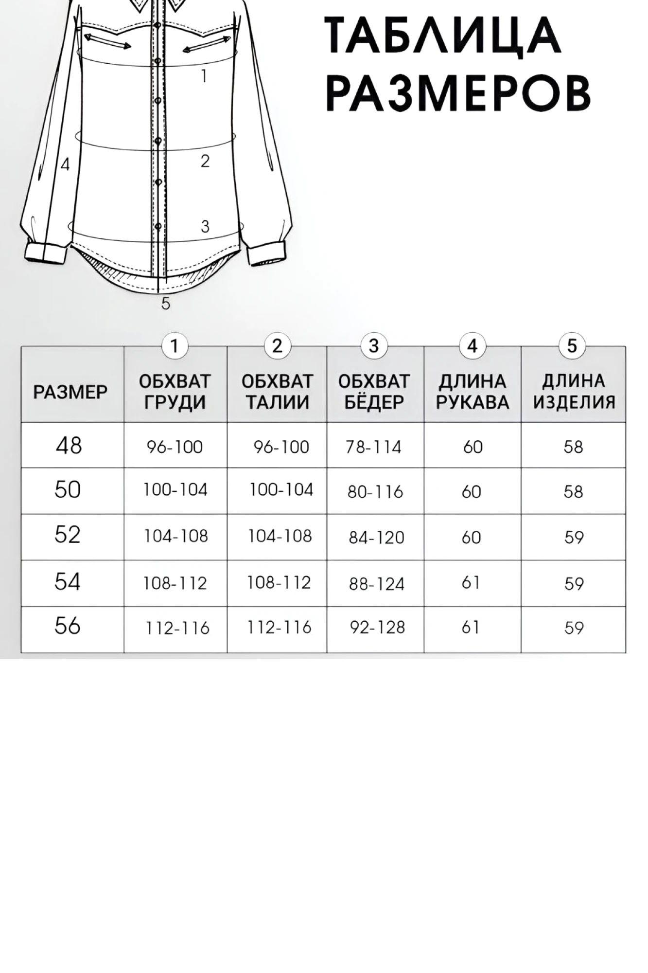Таблица размеров