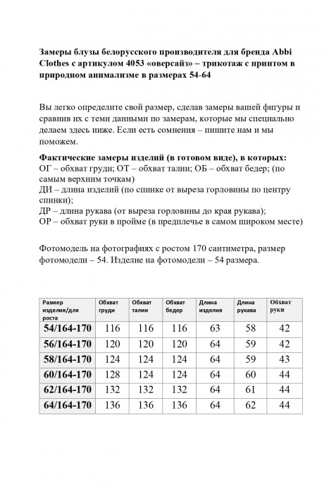 Размер 54 ОГ – 116; ОТ – 116; ОБ – 116; ДИ – 63; ДР – 58; ОР – 42