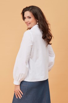 Блузка женская классическая прямого силуэта. Перед с вертикальными складками, с застёжкой в среднем шве. Рукав втачной одношовный со сборкой по низу, на притачном манжете. Воротник с декоративной завязкой и застёжкой на петлю и пуговицу.