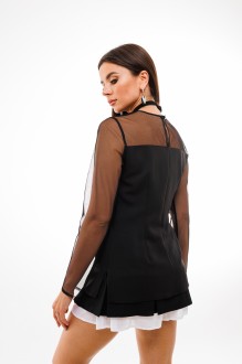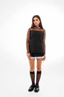 Эта блуза - идеальное сочетание сексуальности и сдержанности. Она обладает рукавами и декольте, украшенными изысканной сеткой, которая придает образу невероятную интригу и шарм.