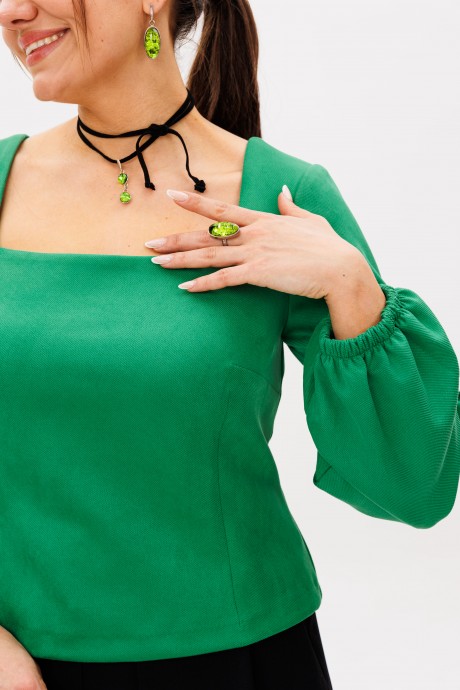 Изысканная, прилегающего силуэта, она мягко обволакивает фигуру, подчёркивая каждую линию с элегантной сексуальностью. Втачной рукав, собранный на резинку у манжеты, добавляет лёгкую игривость и удобство, а квадратный вырез горловины изящно открывает декольте, делая образ соблазнительным и стильным.