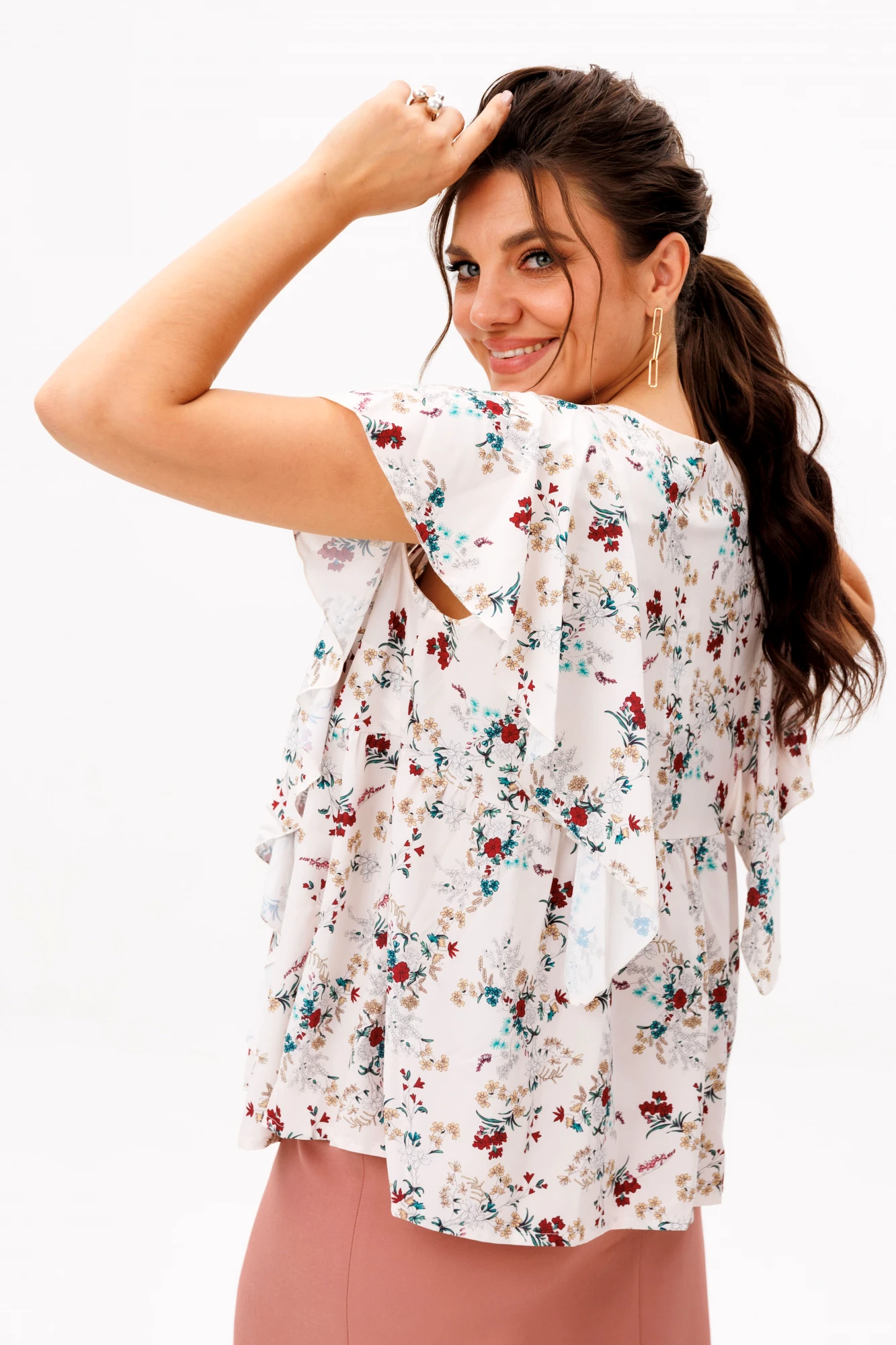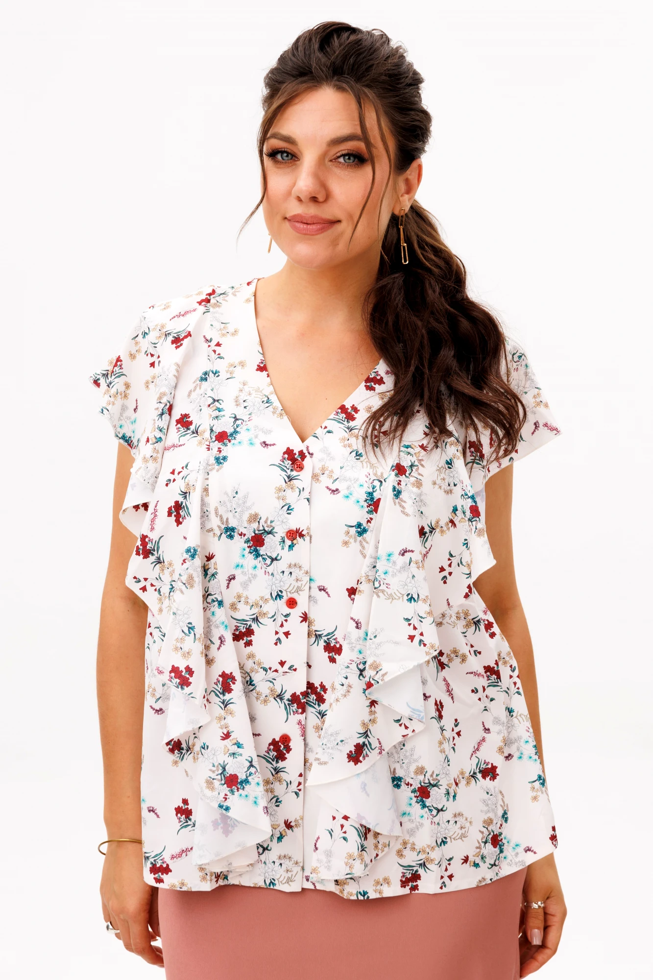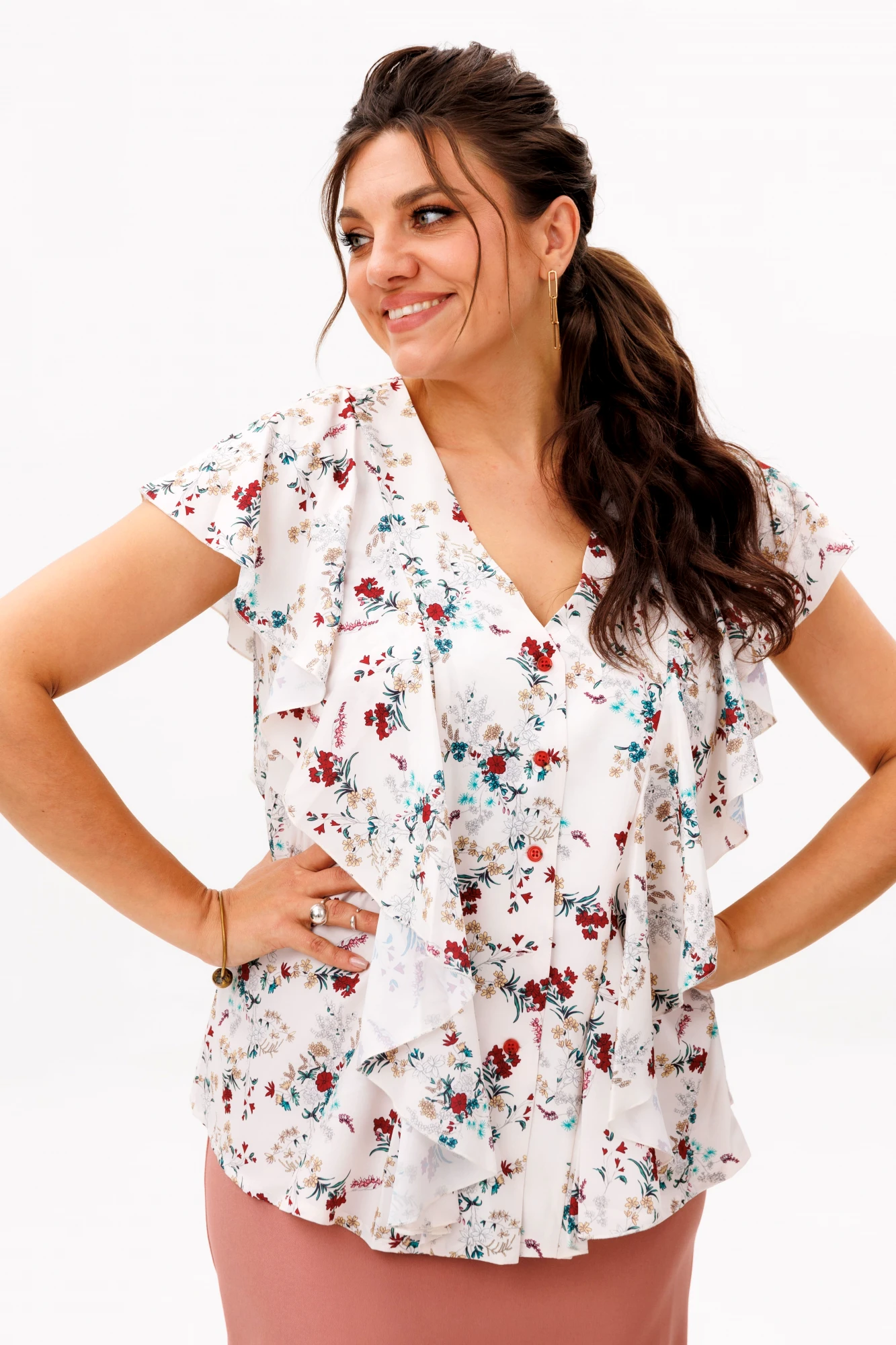 Эта блуза «кветки» легко становится любимой - она гармонично сочетается с брюками, юбками или джинсами, создавая мягкие, кокетливые образы на каждый день.