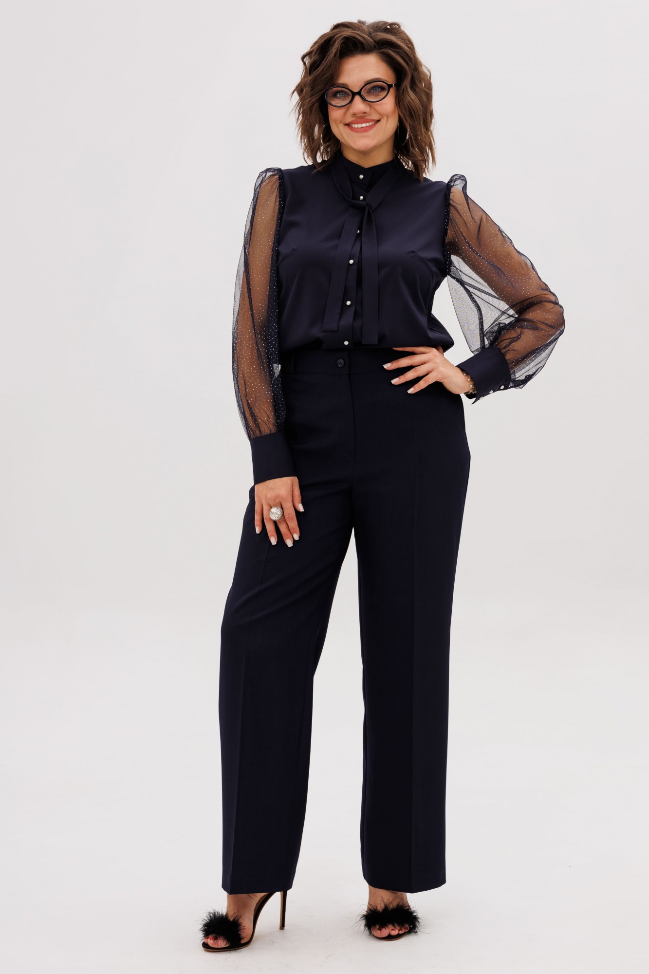 На модели в блузе цвета «звездное небо» синие брюки 1540 от Анелли.