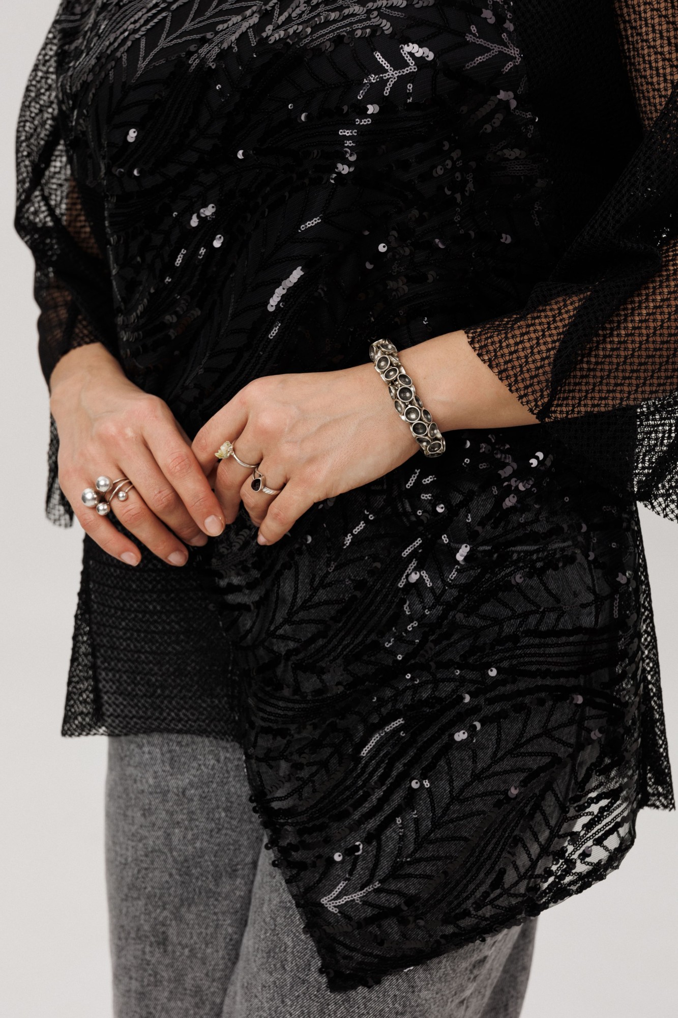 Но главная магия - спереди: россыпь пайеток, застывших, как тысячи крошечных звёзд. Они не кричат, а шепчут о вечере, где зажигаются огни, или просто превращают серый день в момент сияния.