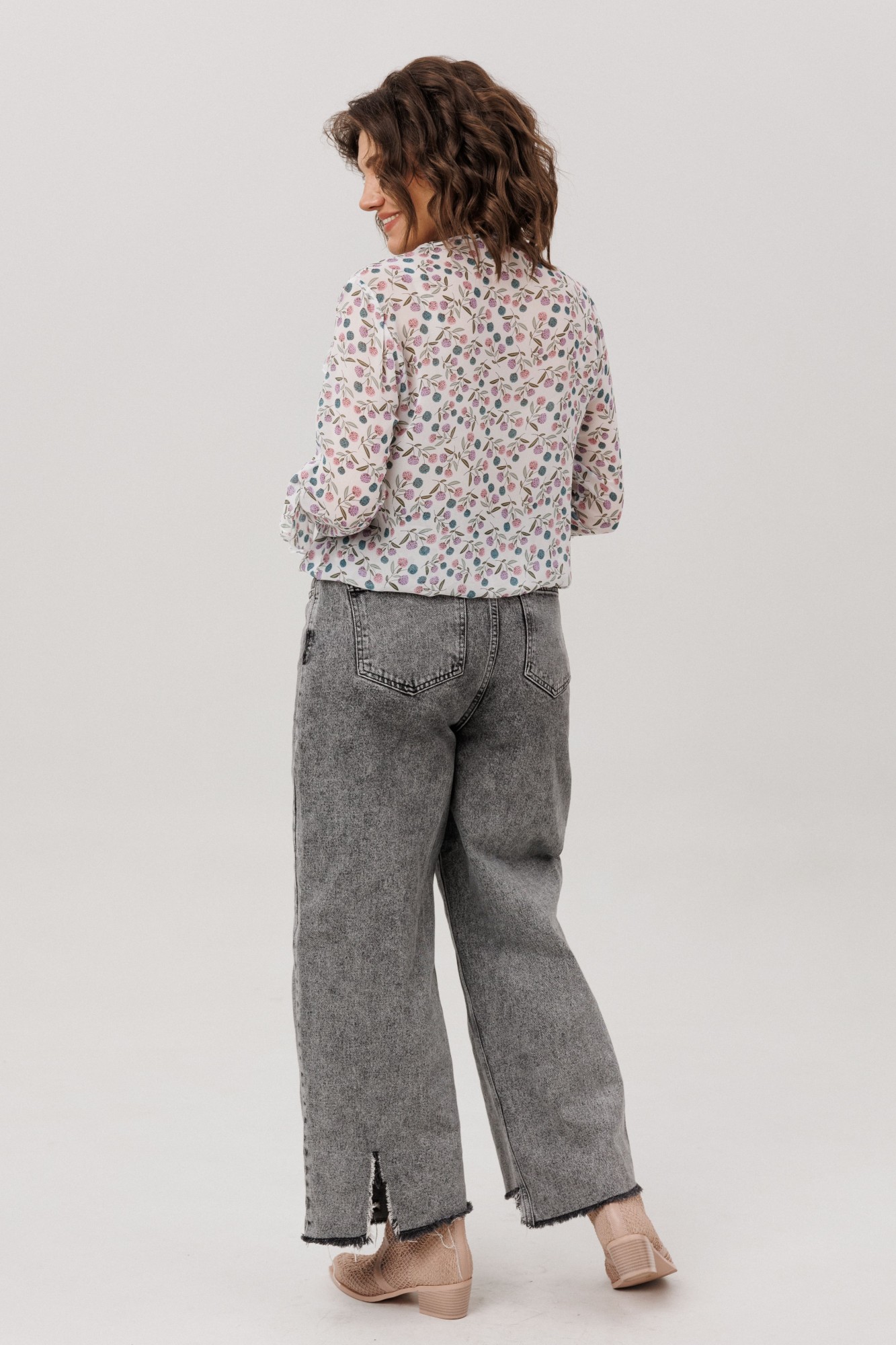 Окутанная лёгкостью воздушного шифона с пленительным принтом «клевер», эта блуза становится воплощением нежной элегантности. Её прямой силуэт, струящийся вдоль фигуры, украшен едва уловимыми сборками у груди, добавляющими мягкий объём. Главная мелодия образа - волнующий волан, что, будто случайный шёпот, рождается у самой горловины и, следуя изгибу кокетки, закручивается вокруг рукава нежной спиралью, полной романтики. Глубокий V-образный вырез подчёркивает изящество линий, а скрытая подкладка по переду и резинка по низу дарят комфорт, делая эту блузу от Анелли идеальным спутником для создания лёгкого и вдохновенного образа на каждый день. Она столь же уместна для романтической городской прогулки и для неспешного бранча в уютной кофейне. Эта вещь преобразит строгий офисный лук, смягчив его нежной спиралью волана, и станет изысканным выбором для свидания, когда каждое движение будет отмечено воздушной игрой ткани.