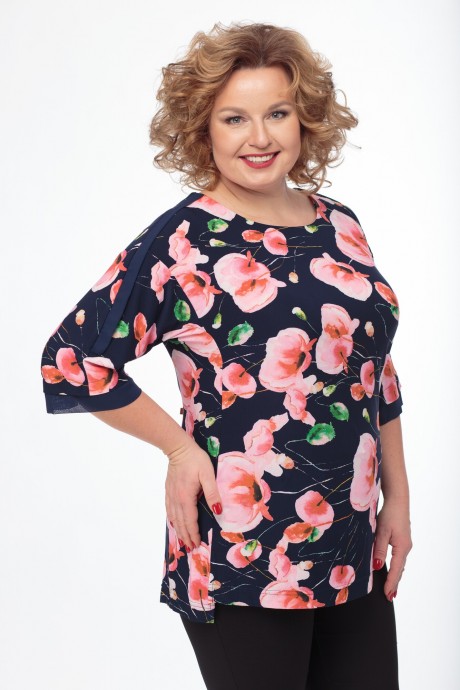 Блузка Anelli 381 темно-синий в цветы