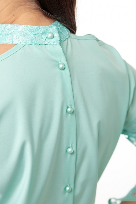 Подчёркивающая фигуру воздушная баска, эластичная тесьма по линии талии. Спинка с застежкой на пуговицы.