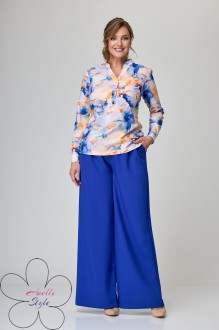 При съемке в образе использованы изделия бренда ANELLIstyle – брюки 1294 василек и 895 бордо.
