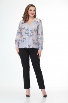 Перед и спинка с романтичными кокетками и кружевными вставками, v-образный вырез горловины, застежка на навесные петельки и пуговицы. Втачной рукав на манжете и кружевной вставкой.