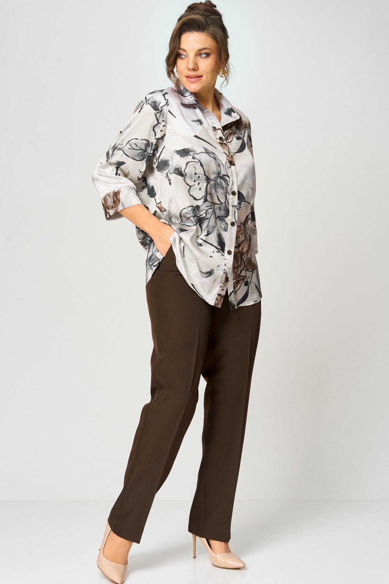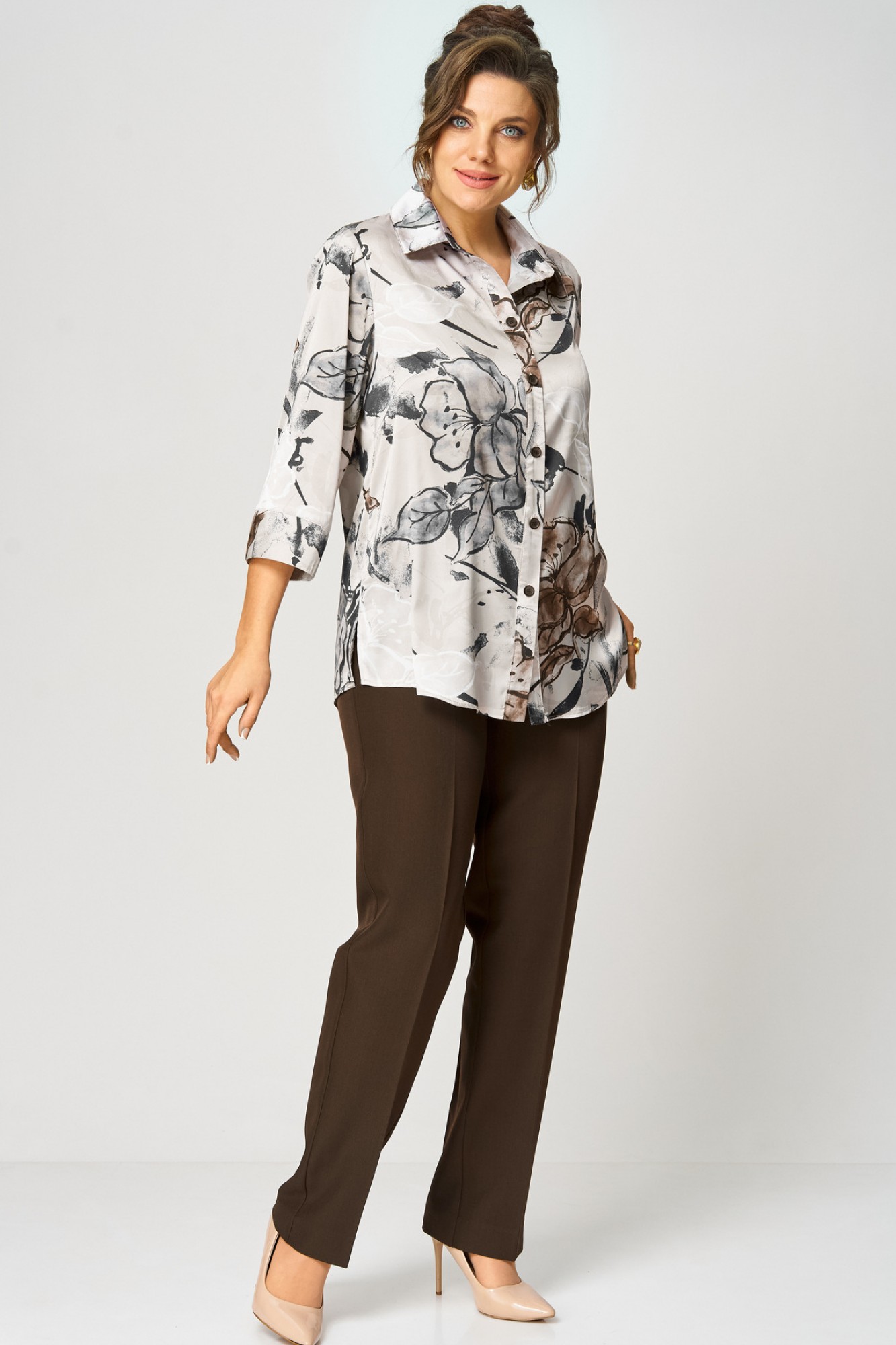 Идеальная блуза для создания стильного базового гардероба. Прямой крой скроет недостатки фигуры и подарит комфорт в течение всего дня. Романтичные рукава 3/4 с манжетами подчеркнут изящество запястий, а элегантный отложной воротник завершит образ. Удобная застежка на пуговицы и боковые разрезы делают блузу невероятно удобной.