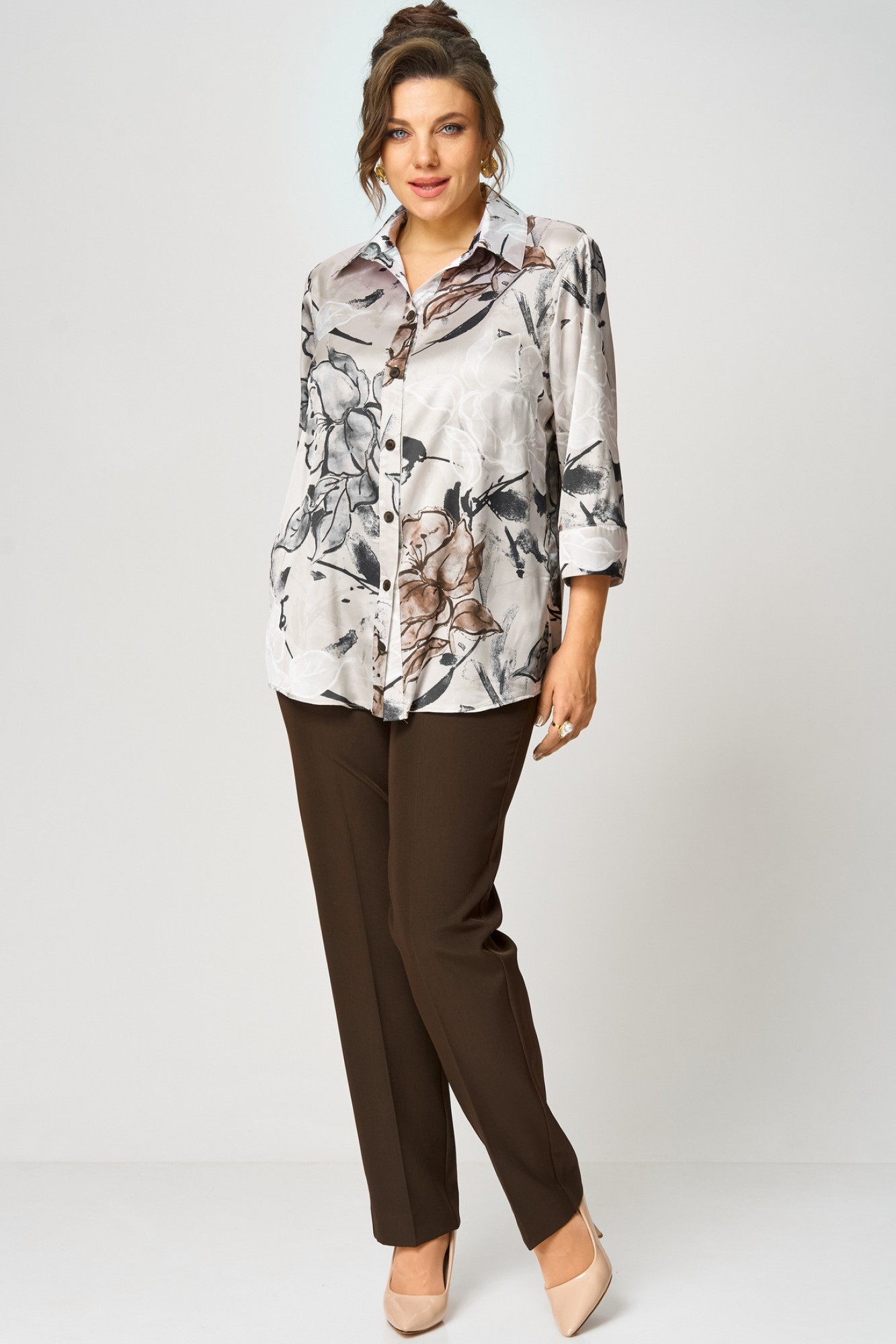 Блузка БелЭльСтиль 877 бежево-коричневый