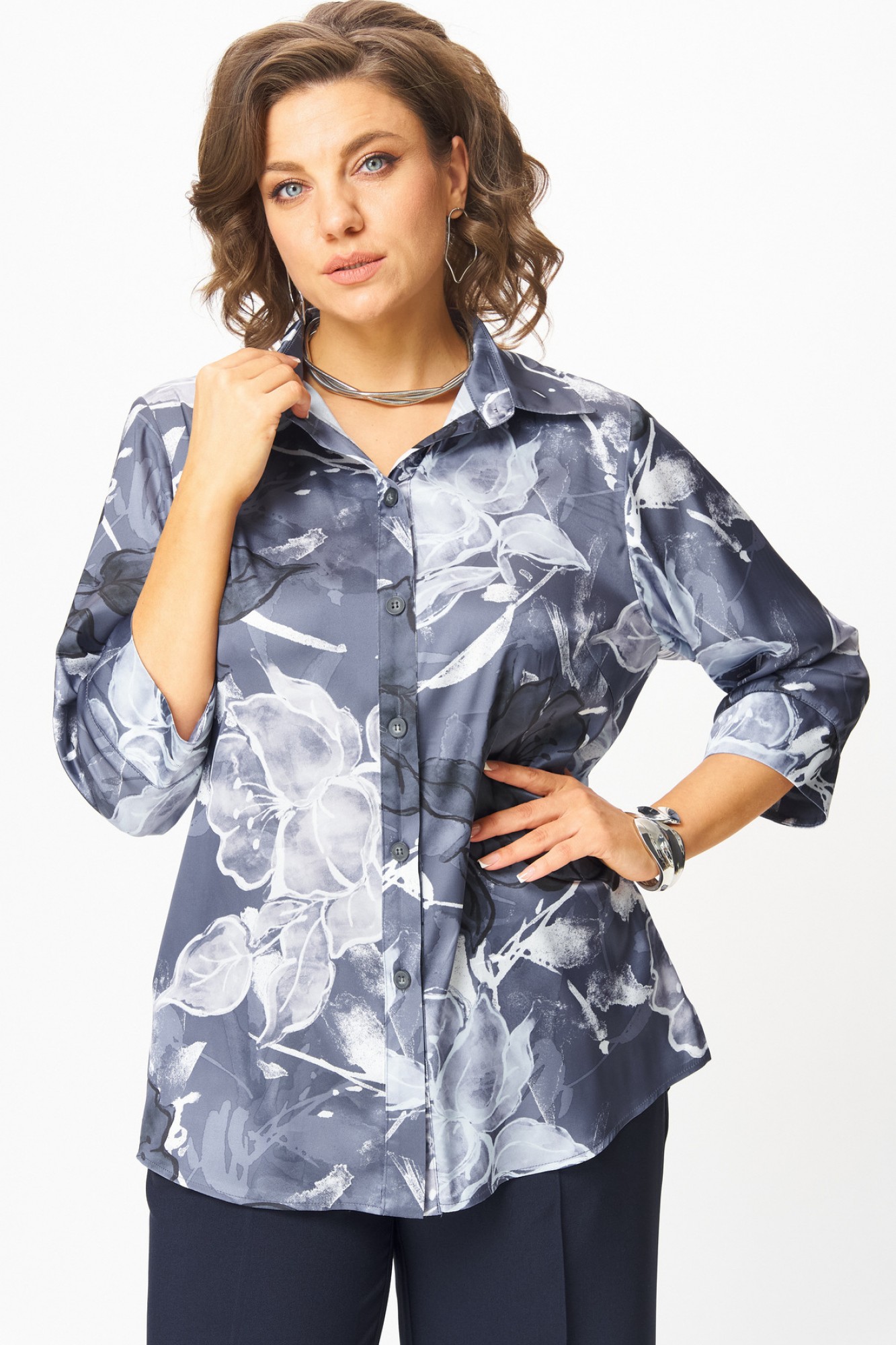 Идеальная блуза для создания стильного базового гардероба. Прямой крой скроет недостатки фигуры и подарит комфорт в течение всего дня. Романтичные рукава 3/4 с манжетами подчеркнут изящество запястий, а элегантный отложной воротник завершит образ. Удобная застежка на пуговицы и боковые разрезы делают блузу невероятно удобной.