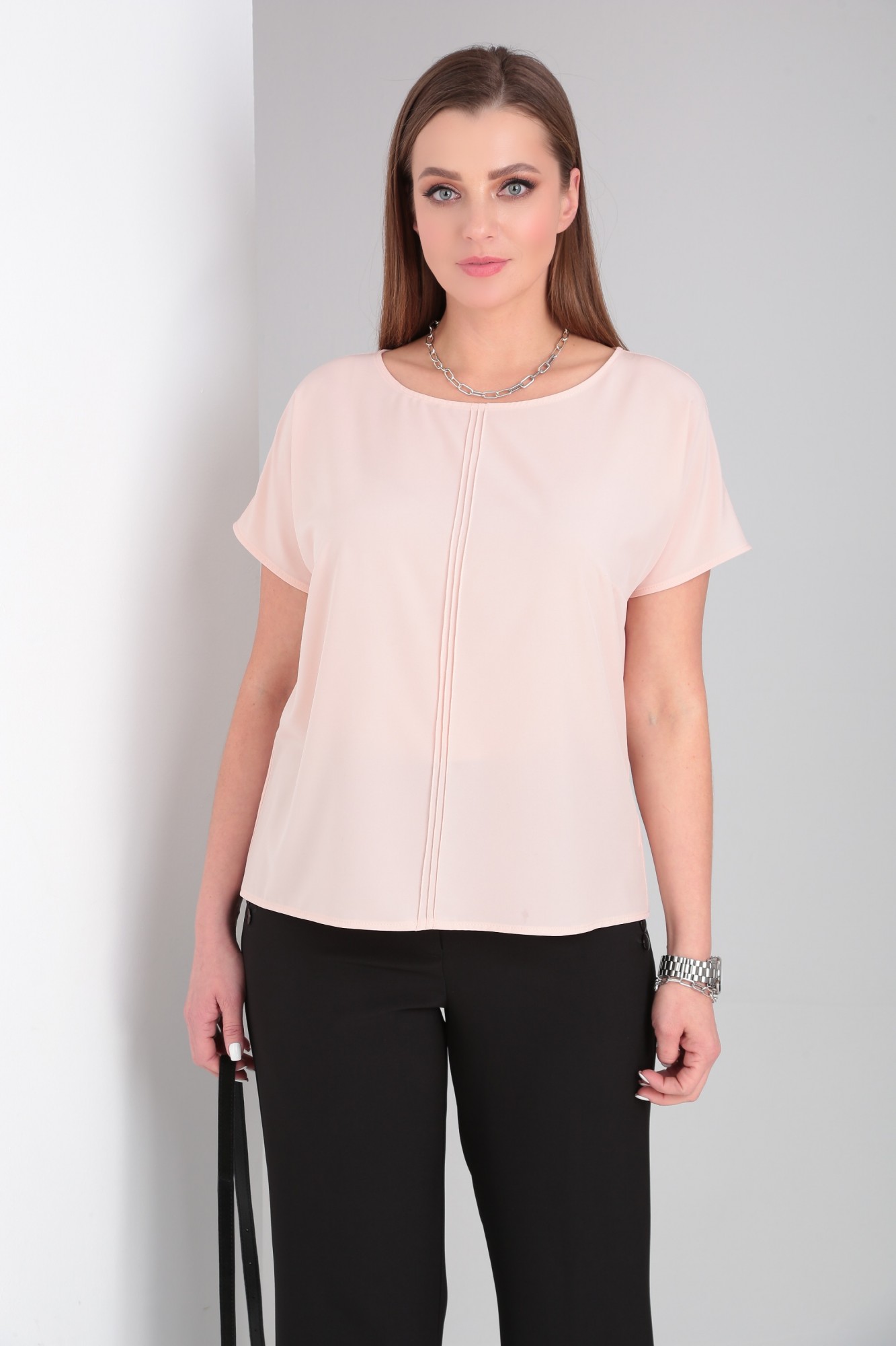 Блузка женская прямого силуэта, со спущенной линией плеча, с округлым вырезом горловины, имеются декоративные отсрочки по полочке.