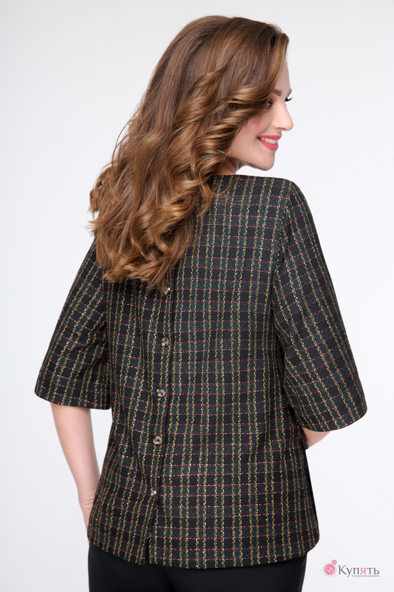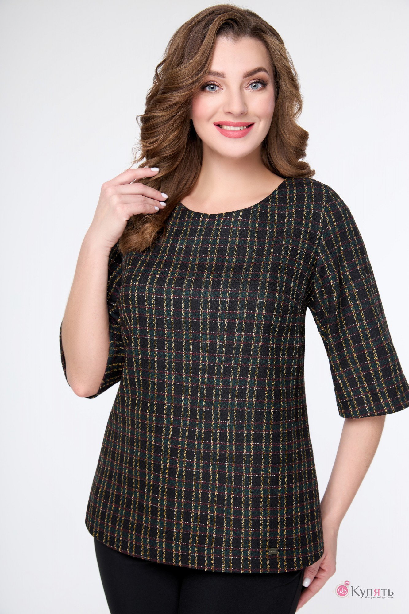 Блузка Дали 3152 черный с цветной клеткой с ID товара 320424