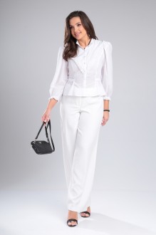 Изысканная блузка из легкой летней ткани с множеством декоративных элементов (стойка-воротник с кружевом, отлетная фигурная кокетка по полочке и спинке, втачная планка с декоративными пуговицами, рельефные швы). Рукав втачной, со сборкой по плечу, низ рукава присобран на эластичную ленту.