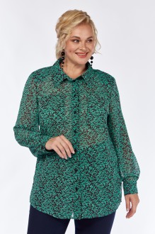 Блуза прямого силуэта из принтованной ткани. По центру полочки застежка в виде планки на миниатюрные пуговицы, что служит декоративным элементом изделия. Полочки с накладными карманами. Воротник стояче-отложной, рукав втачной, внизу обработан притачной манжетой. Спинка с отрезной кокеткой, и встречной складкой, для повышенной комфортности. В боковых швах небольшие разрезы.