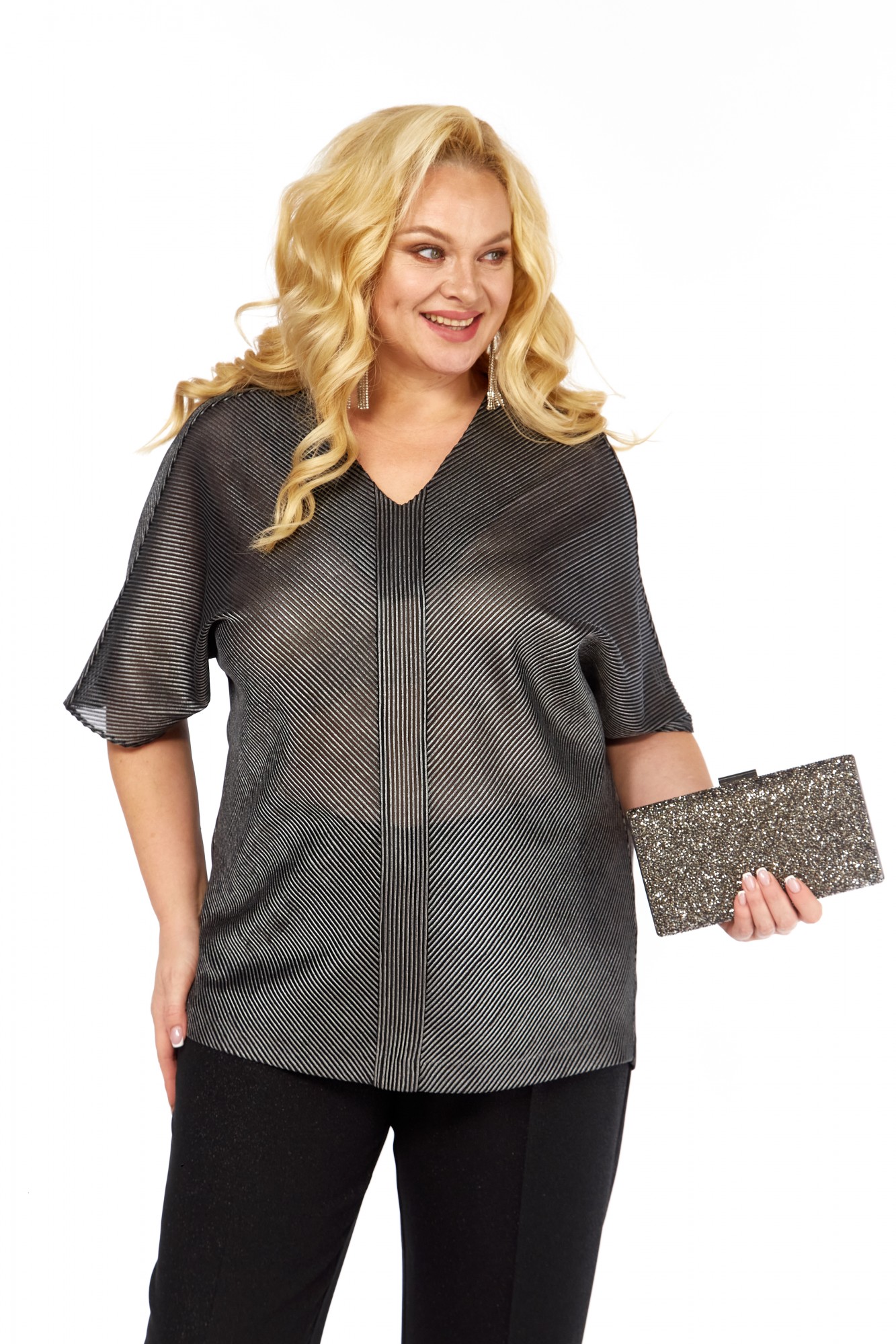 Блуза полуприлегающего силуэта, выполнена из струящейся ткани. Эстетично подчеркнут V-образный вырез горловины, что служит декоративным элементом. Изделие с цельнокроеным рукавом, создает современный стиль образу.