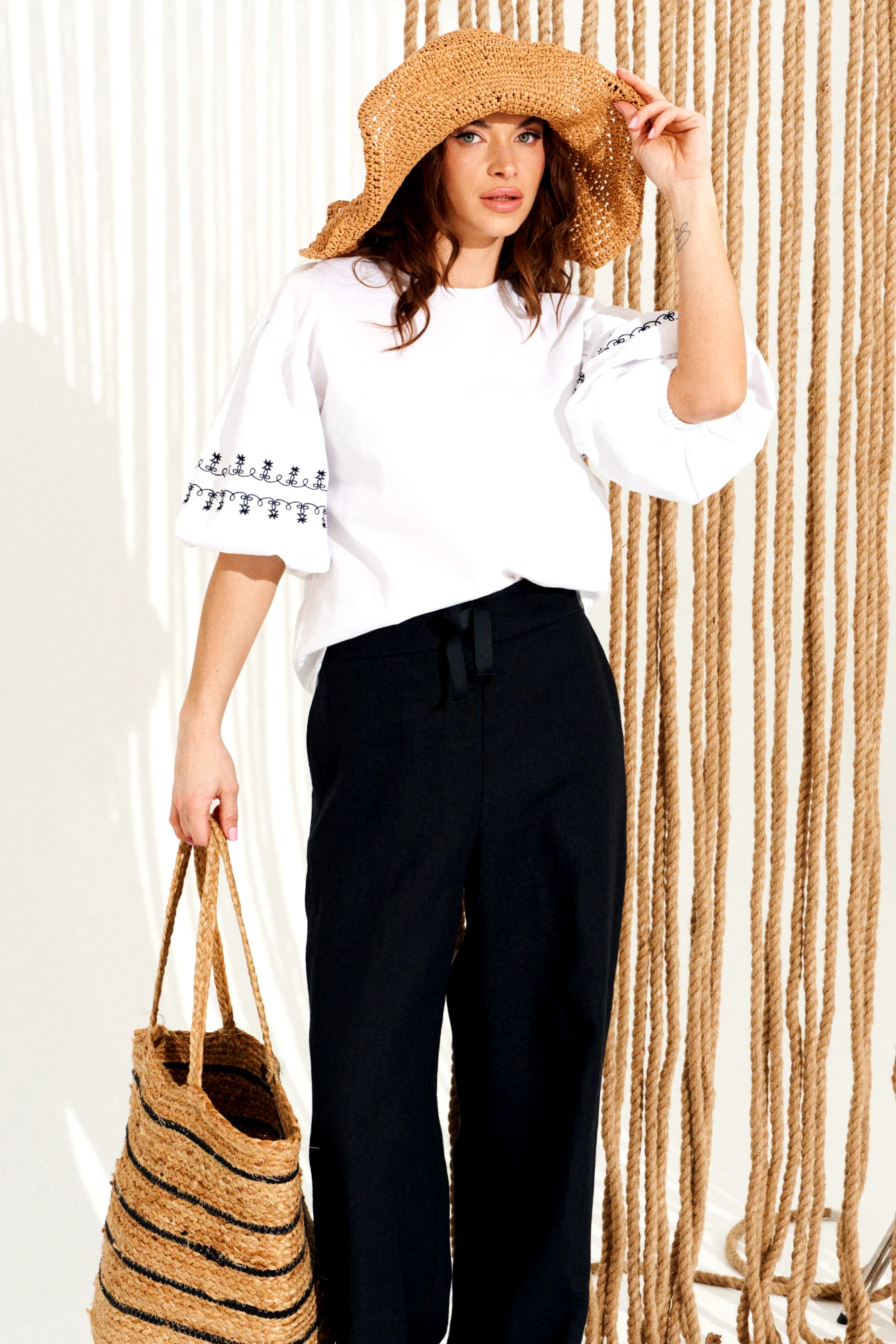 Блузка ELLETTO LIFE 13002 бело-черная