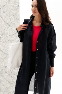 Блузка-туника женская, свободного силуэта, длиной ниже линии колен из легкой блузочной ткани. Со спущенной линией плеча. Перед с центральной цельнокроеной планкой и застежкой на петли, пуговицы, с накладными карманами. Рукав одношовный, длинный, на притачной манжете. Воротник рубашечный на отрезной стойке. Низ блузки-туники фигурный.