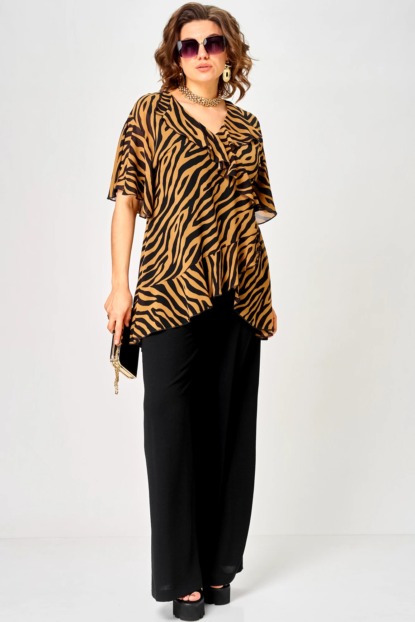 Блузка EVA GRANT 198 -1 принт зебра, кофе