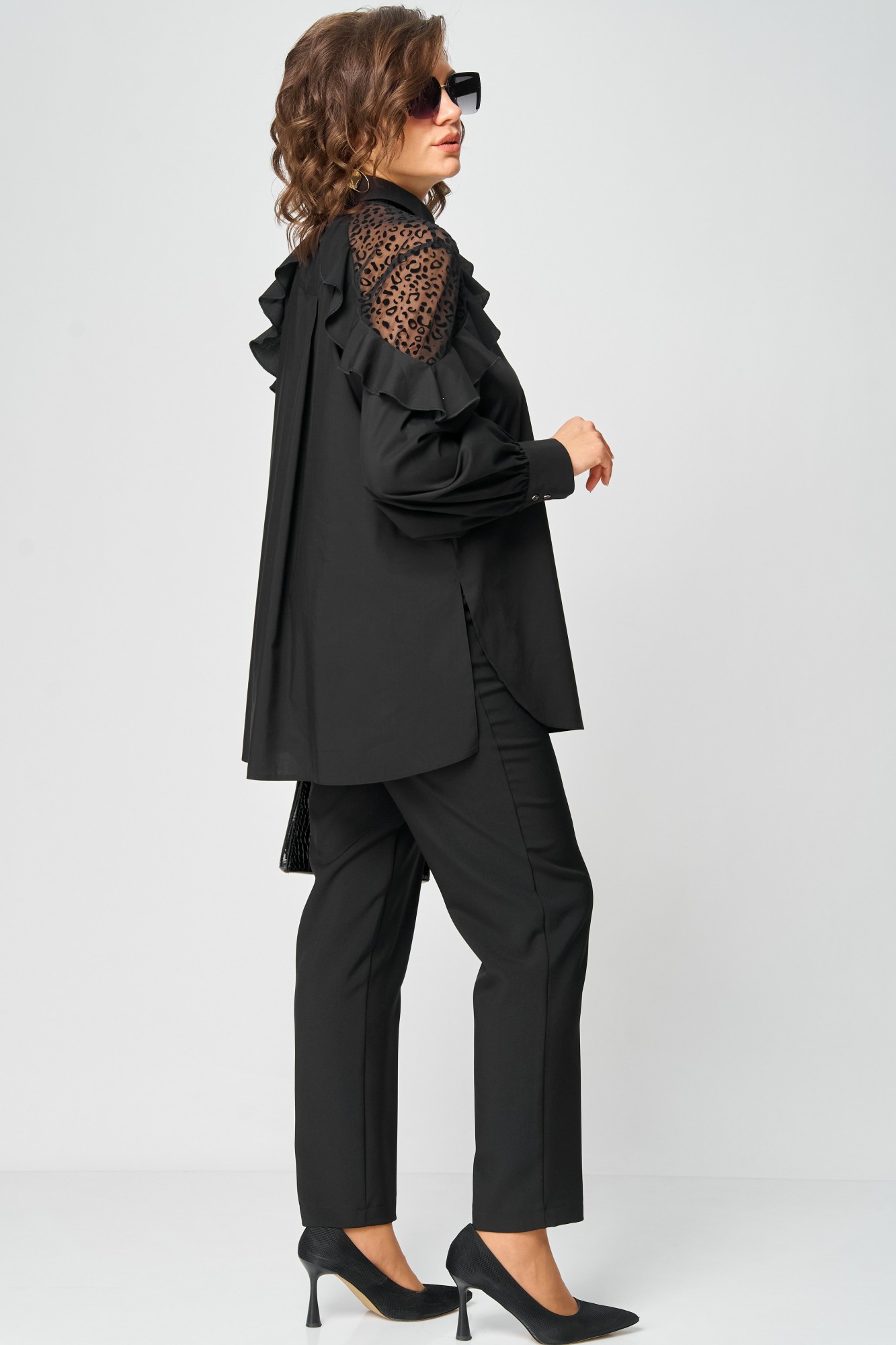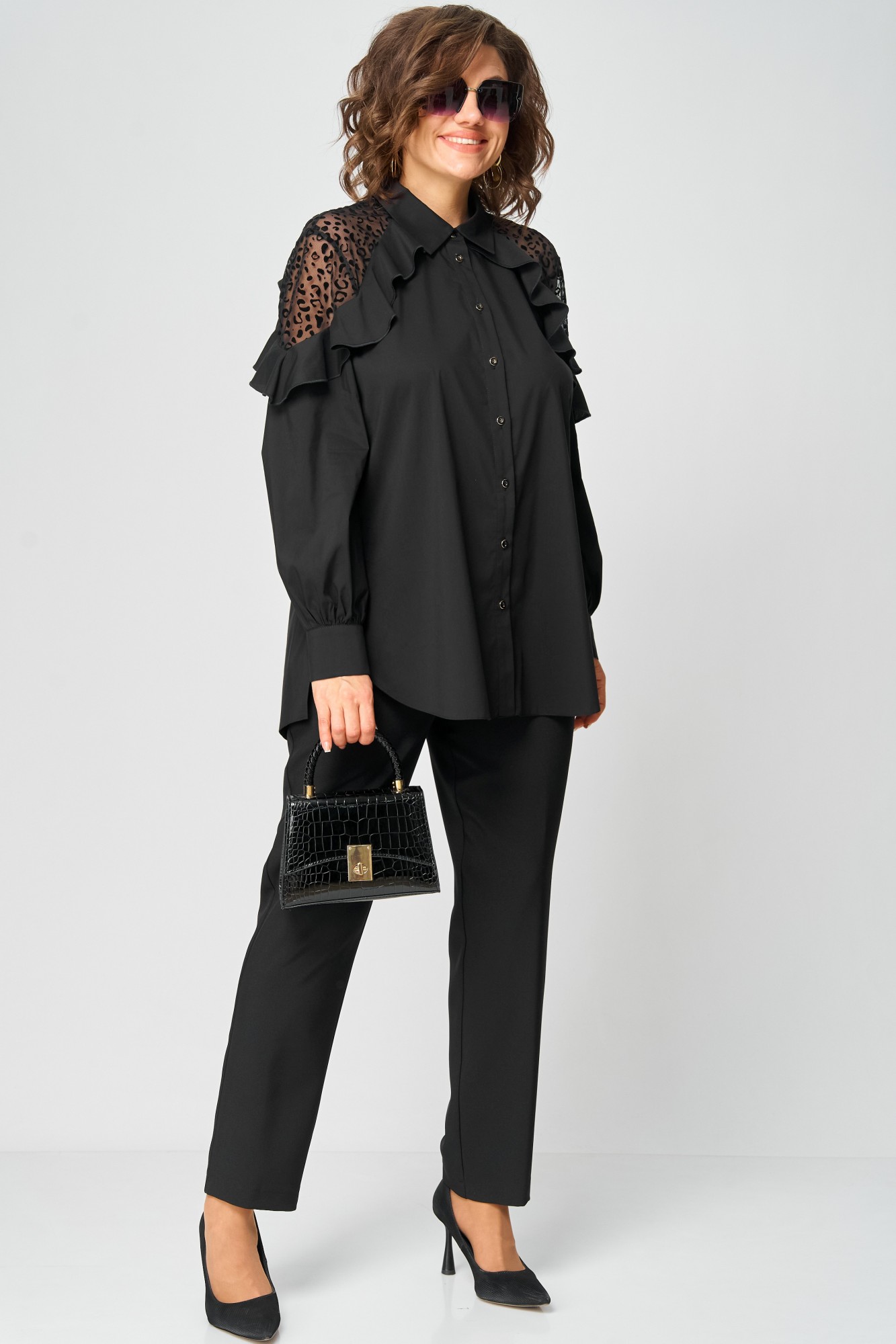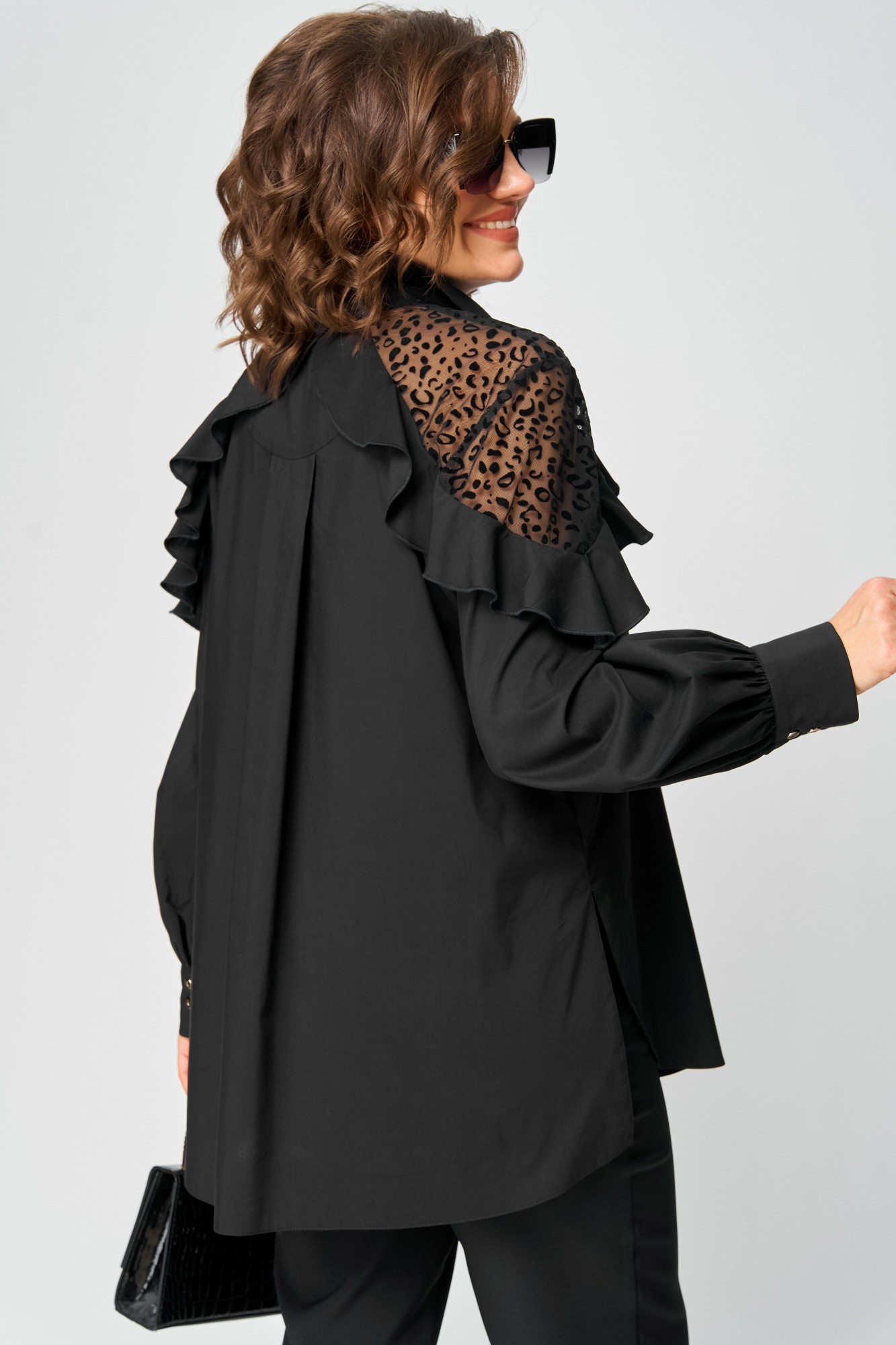 Блузка женская шикарная красивая нарядно-повседневная свободного силуэта выполнена их хлопка в сочетании с элегантным кружевом. Вырез горловины воротник на стойке рубашечного типа, рукав втачной с декоративным подрезом из кружева по низу на притачной манжете. Застежка до верху на обметанные петли и пуговицы. Низ блузы фигурный, в боковых швах обработан разрезы.