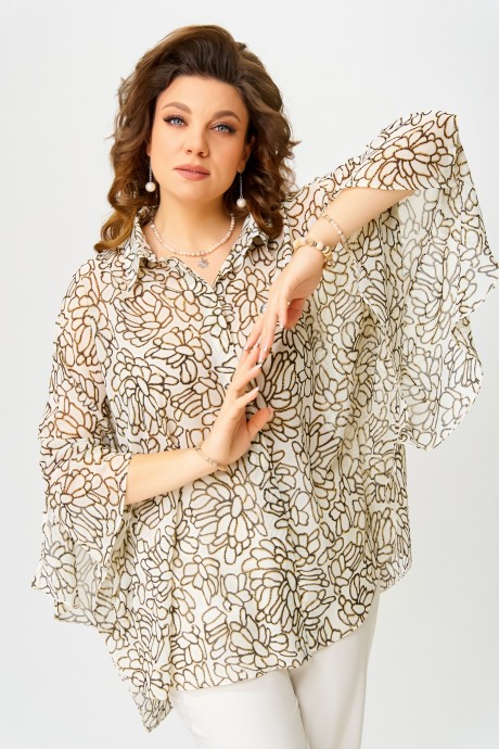 Женская блузка аля-Пугачева "Ветрана" выполнена из легкой шифоновой ткани. Блузка расширенная к низу. Полочка на потайную застежку на петли и пуговицы. Воротник рубашечного типа на стойке. Низ обработан швом в подгибку. Эта блузка украсит вас на любом празднике или городе. Вы будете королевой!