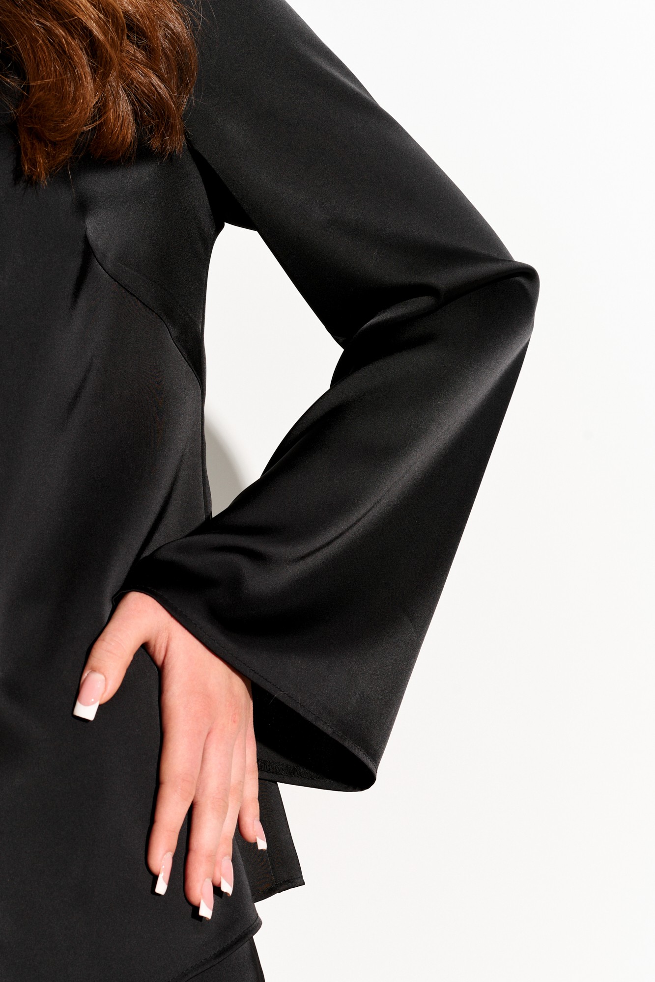 Базовая женская рубашка свободного силуэта выполнена из струящейся ткани с содержанием шёлка. Рукава втачные с разрезами немного расширены к низу; воротник рубашечный; по переду функциональные завязки. Рубашка полностью соответствует заявленному размеру. Пожалуйста, пользуйтесь таблицей замеров готового изделия. Уход: - рекомендуется машинная стирка при температуре не выше 30 градусов; - выбирайте деликатный режим стирки.