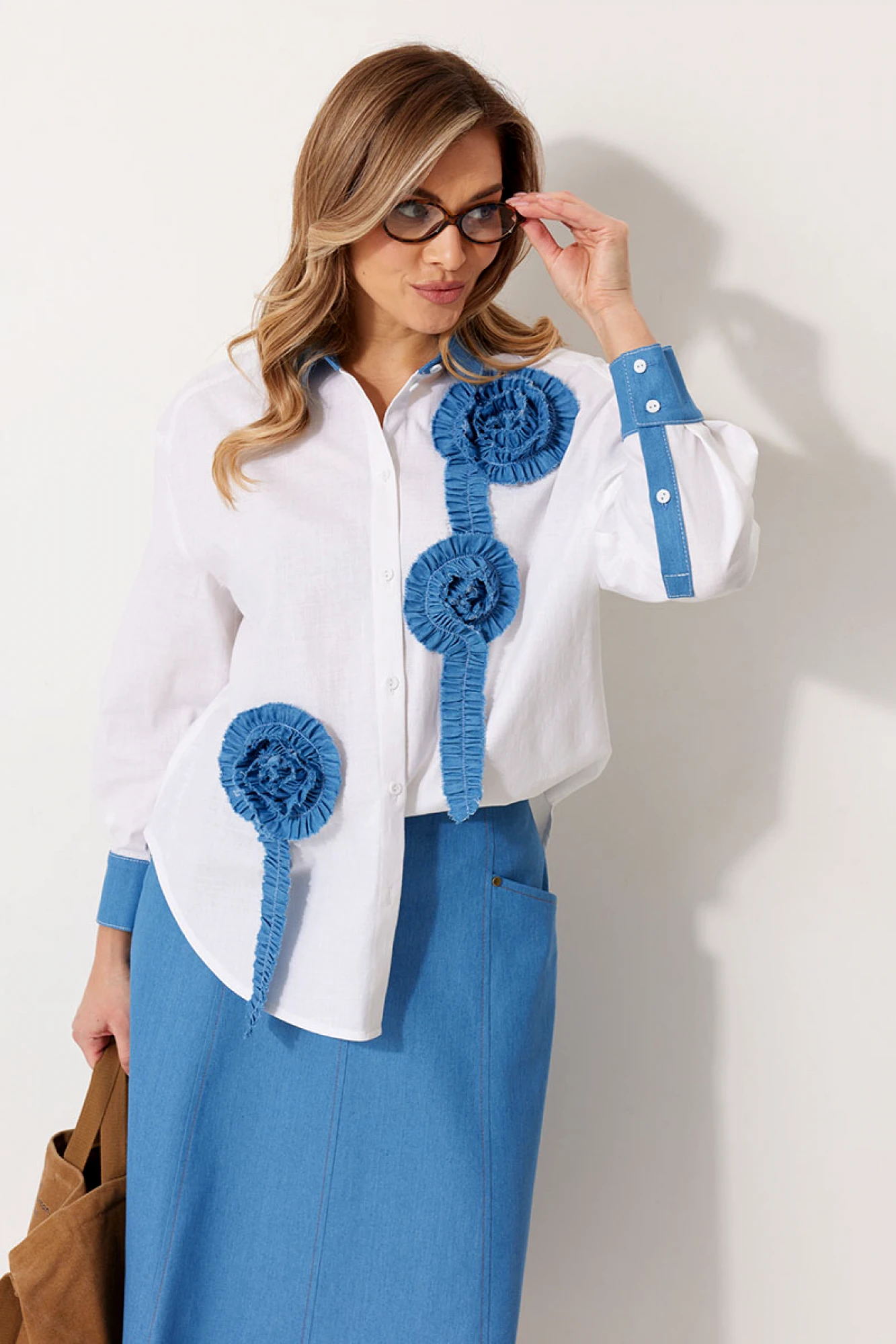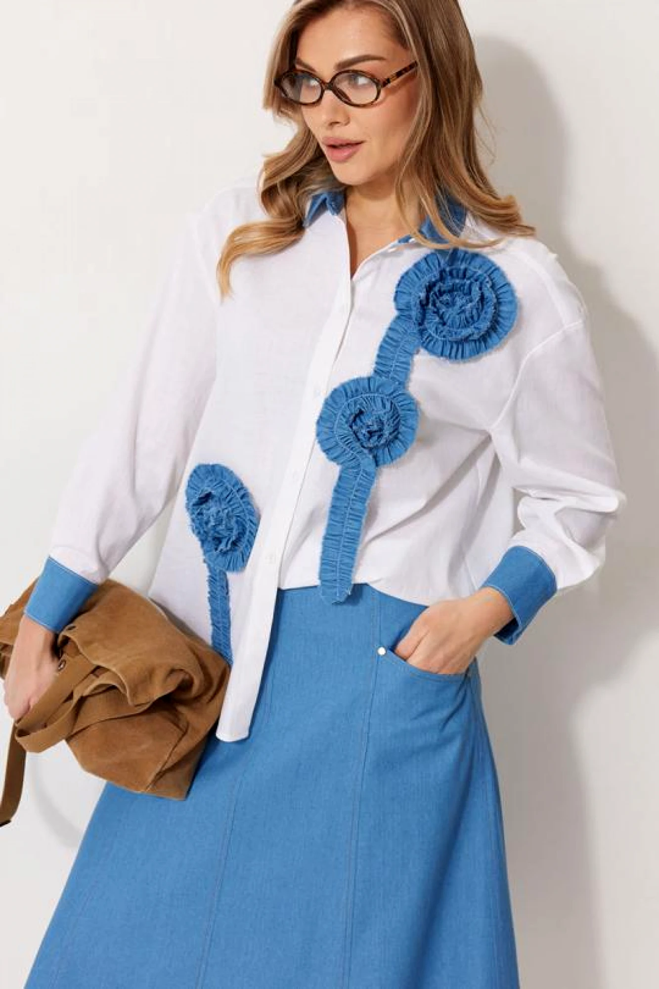 Блузка KALORIS 2276 бело-голубая