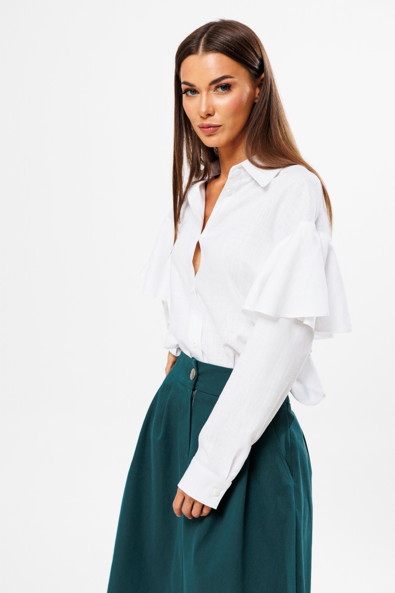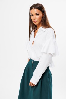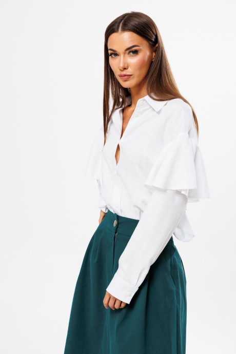 Женская блуза свободного силуэта с воланами — стильный и изящный элемент гардероба. Она придаёт образу женственность и элегантность, подходит для различных мероприятий и рабочих будней. Блуза выполнена из лёгкой и приятной к телу ткани, что обеспечивает комфорт в течение дня. Воланы на рукавах и подоле добавляют изысканности и шарма, делая блузу уникальной и неповторимой.