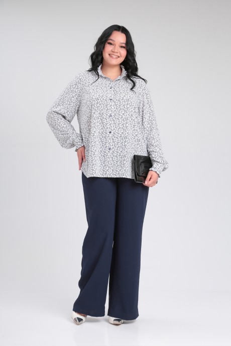 Нарядная романтичная блузка свободного силуэта, выполнена из легкой стрейчевой ткани, с втачным рукавом. Воротник стойка и манжет с рюшей, застежка на петли пуговицы. Блузка будет прекрасно смотреться в комплекте с брюками, а так же с юбкой, каждый раз помогая Вам создавать новый неповторимый образ. Приятная ткань, современный стиль, интересный дизайн, свободный покрой, широкий размерный ряд.