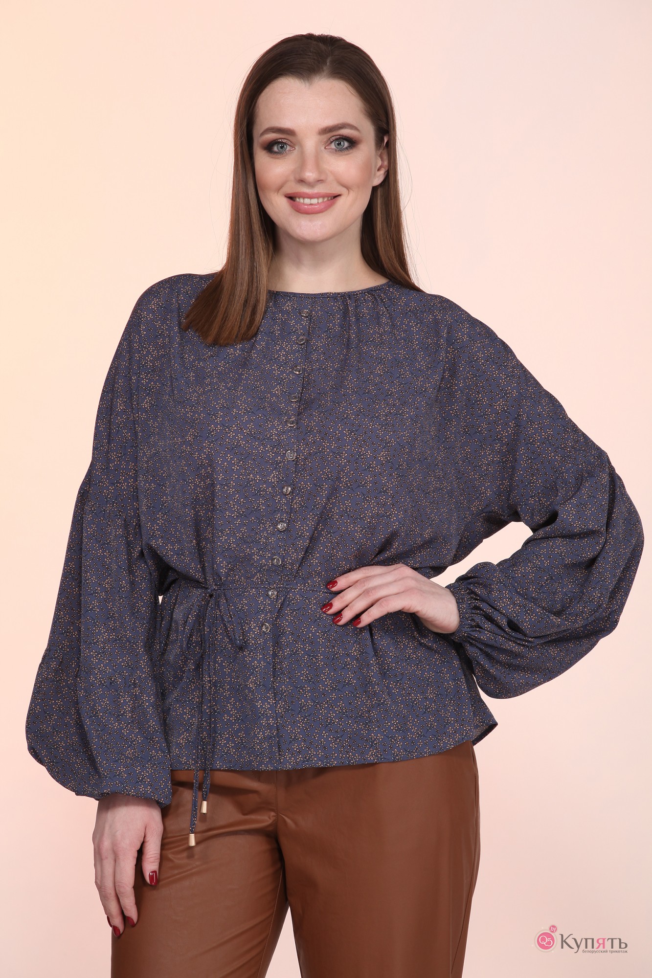 Блузка Lady Style Classic 2265 Синий с бежевыми цветочками с ID товара 268549