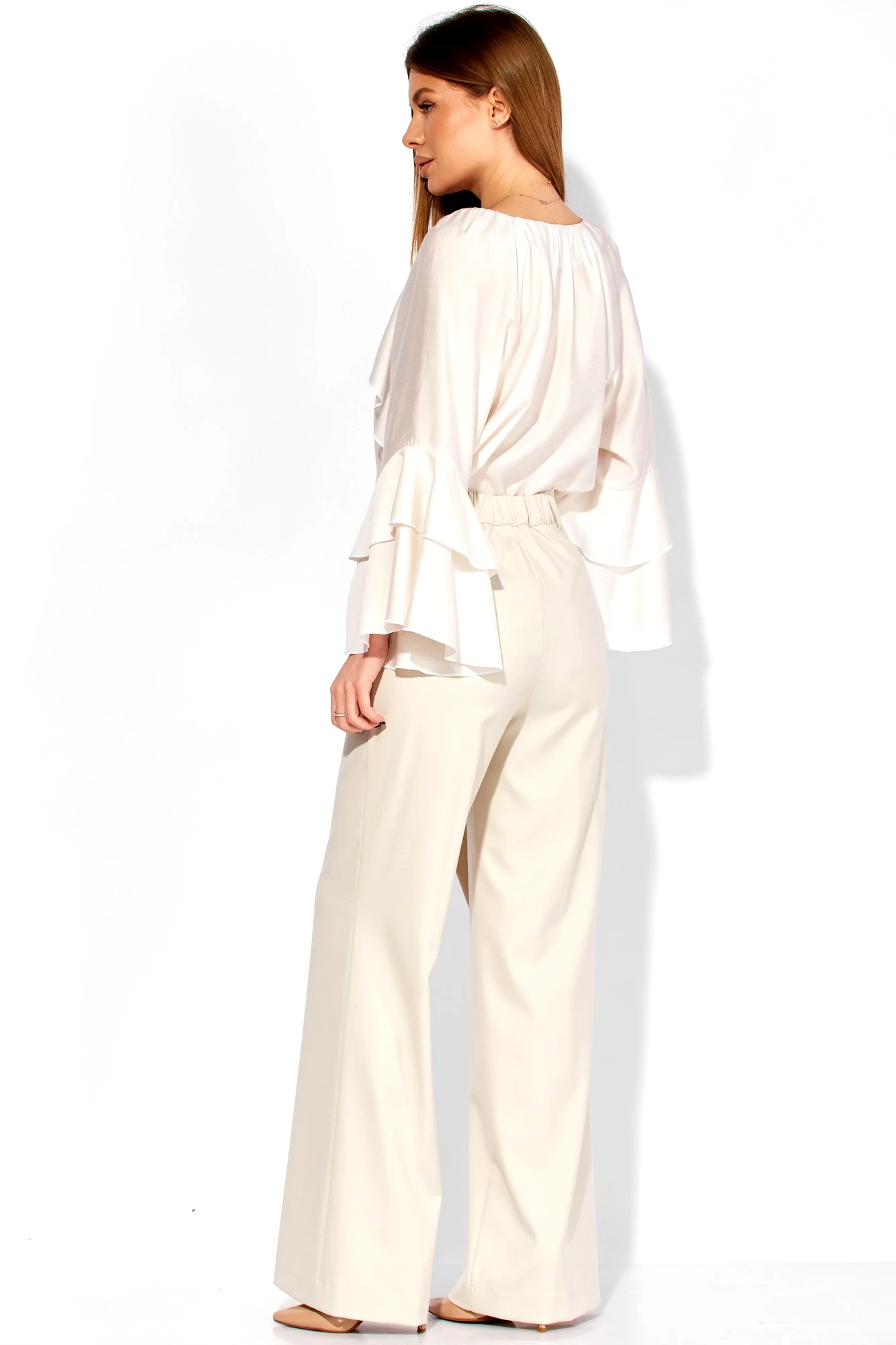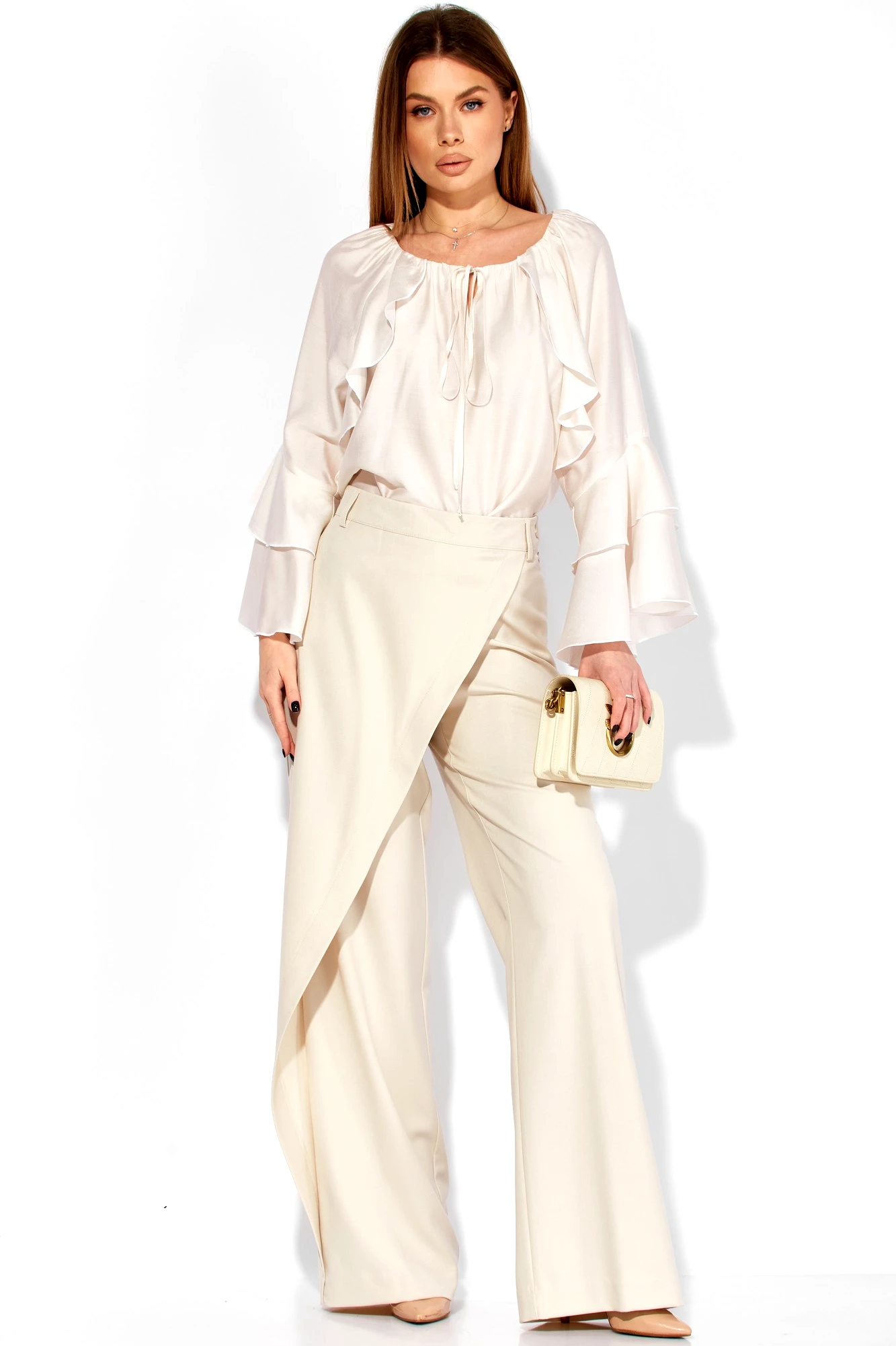 Представляем вам изысканную блузку от LAIKONY, которая станет настоящим акцентом вашего гардероба! Эта модель свободного силуэта идеально облегает фигуру и заканчивается на линии бедер, придавая вам непринужденный и стильный вид. Вырез горловины округлый со сборкой и завязками подчеркивает вашу шею и декольте, создавая утонченный образ. В боковых швах элегантные разрезы. Спинка блузки оформлена кокеткой, а в центре нижней части располагается аккуратная складка, придающая модели объем и динамичность. Блузка выполнена из мягкой вискозы, не тянется. Эта блузка станет идеальным выбором как для повседневной носки, так и для особых случаев. Сочетайте ее с юбками, брюками или шортами — она легко впишется в любой стиль! Не упустите возможность добавить эту великолепную блузку в свой гардероб! На фото с нашими брюками L-024. Также будет прекрасно смотреться с брюками L-942-2 нашей весенней коллекции.