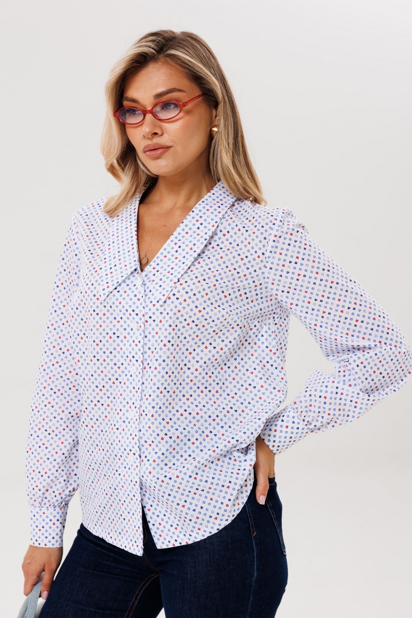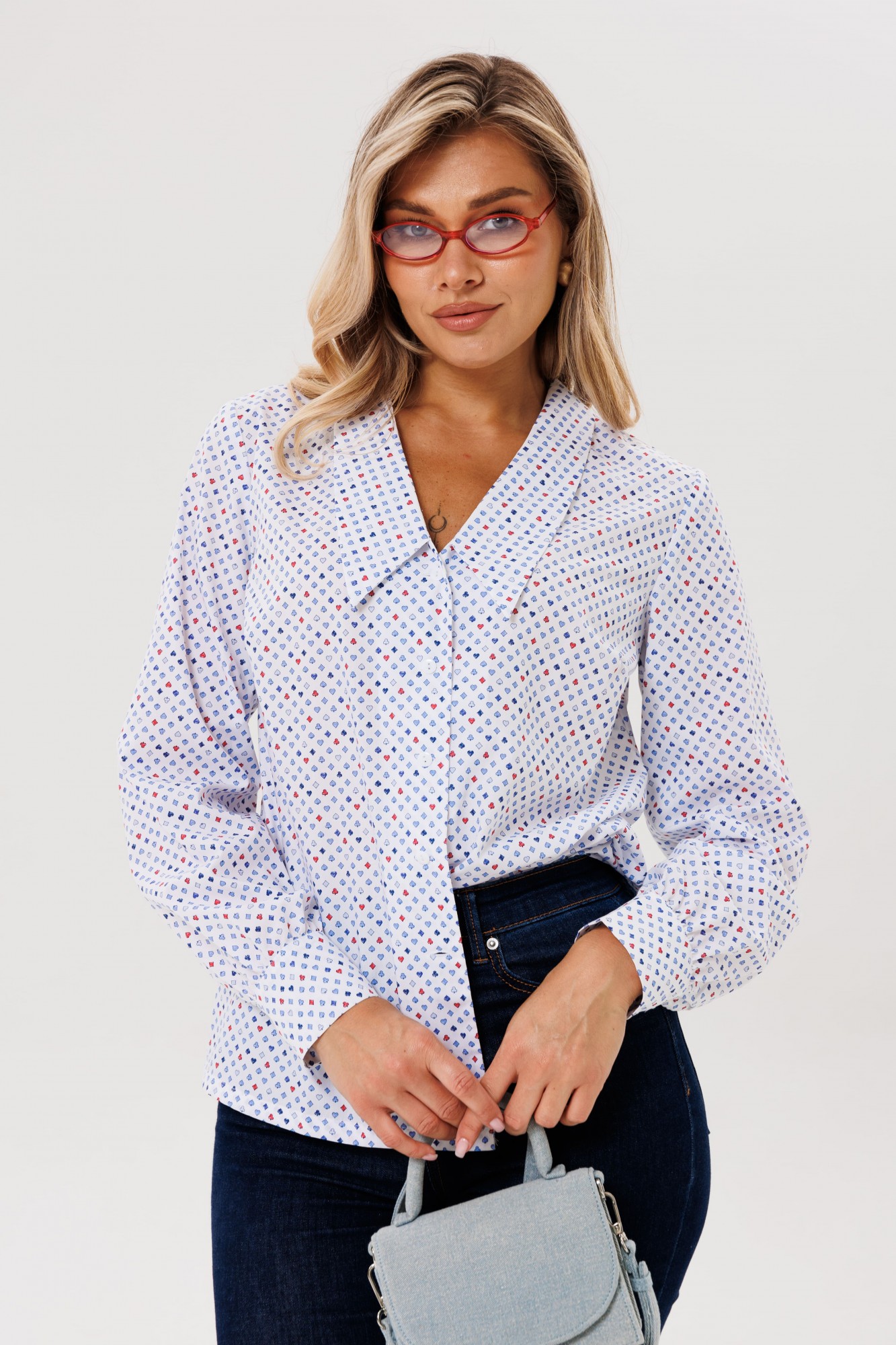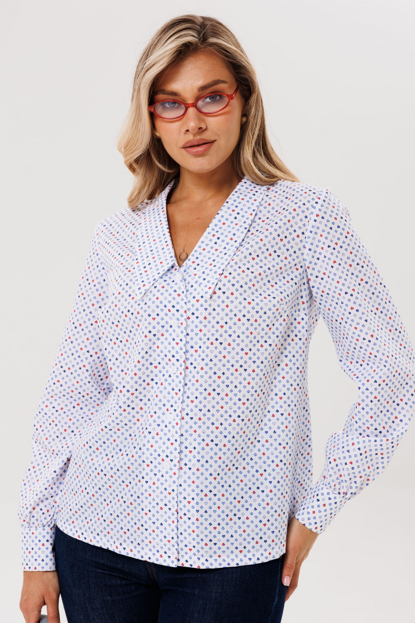 Эта рубашка «карт бланш» — гораздо больше, чем просто базовый элемент гардероба. Она представляет собой идеальную основу для бесчисленного множества образов. Ее универсальная природа позволяет ей быть идеальным компаньоном для строгих офисных брюк, элегантной юбки-карандаш, джинсов с завышенной талией или кюлотов свободного кроя, трансформируясь от повседневной элегантности к деловой сдержанности. Выполнена из высококачественного хлопка, украшенного интеллектуальным и игривым принтом, вдохновленным изысканными карточными мастями. Главной же особенностью, задающей тон всему силуэту, является актуальный удлиненный воротник, который ниспадает изящными линиями, создавая современный и утонченный акцент. Втачные рукава, классические по своей форме, приобретают особое звучание благодаря изящной сборке, которая мягко фиксируется на аккуратных манжетах, добавляя образу объем и динамику. Застежка на пуговицы по переду завершает безупречную композицию, подчеркивая четкую и лаконичную линию полочки. Эта рубашка от Анелли — это та самая вещь, в которой каждая деталь продумана до мелочей, чтобы дарить своему обладателю ощущение непревзойденного комфорта.