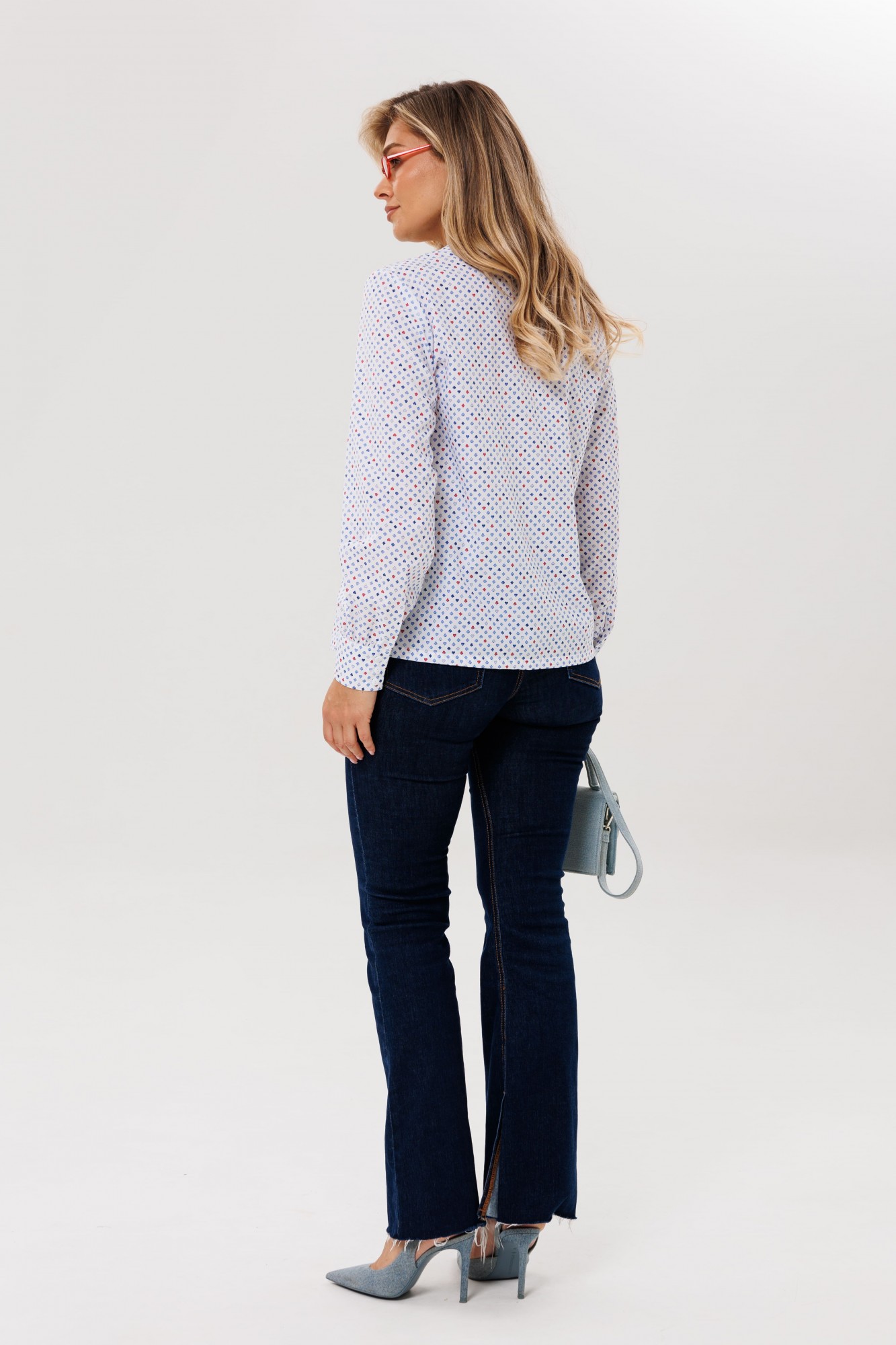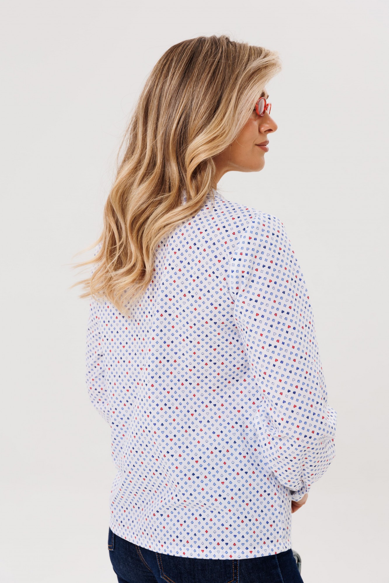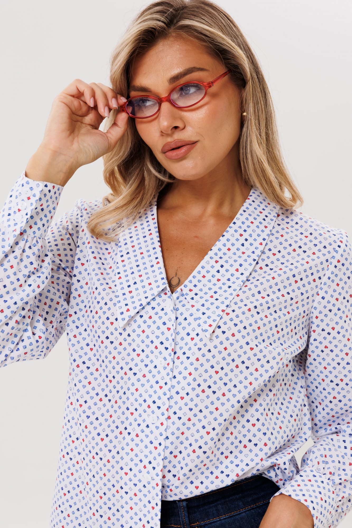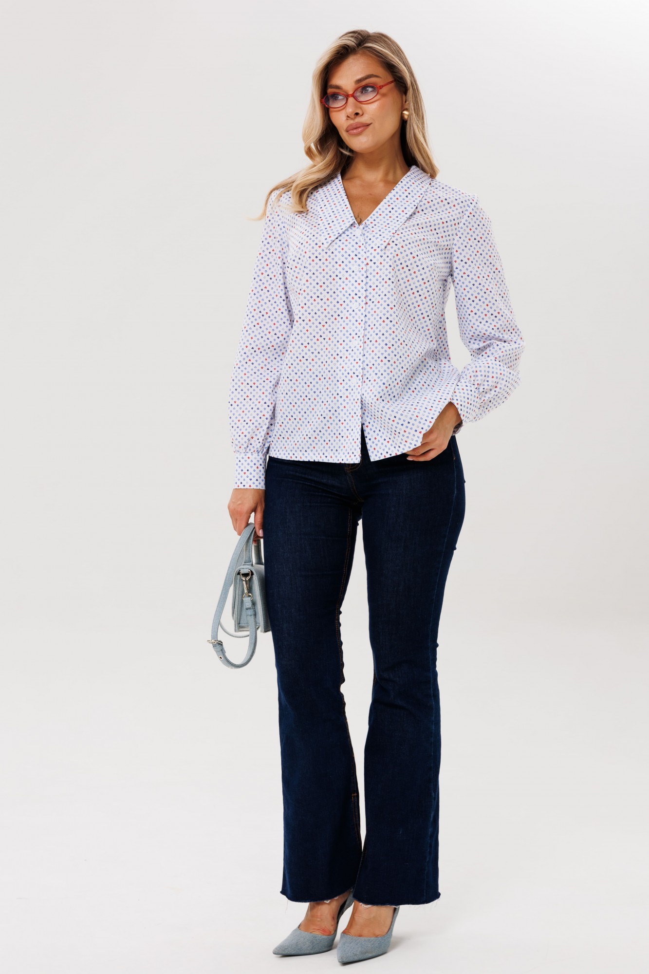 Эта рубашка «карт бланш» — гораздо больше, чем просто базовый элемент гардероба. Она представляет собой идеальную основу для бесчисленного множества образов. Ее универсальная природа позволяет ей быть идеальным компаньоном для строгих офисных брюк, элегантной юбки-карандаш, джинсов с завышенной талией или кюлотов свободного кроя, трансформируясь от повседневной элегантности к деловой сдержанности. Выполнена из высококачественного хлопка, украшенного интеллектуальным и игривым принтом, вдохновленным изысканными карточными мастями. Главной же особенностью, задающей тон всему силуэту, является актуальный удлиненный воротник, который ниспадает изящными линиями, создавая современный и утонченный акцент. Втачные рукава, классические по своей форме, приобретают особое звучание благодаря изящной сборке, которая мягко фиксируется на аккуратных манжетах, добавляя образу объем и динамику. Застежка на пуговицы по переду завершает безупречную композицию, подчеркивая четкую и лаконичную линию полочки. Эта рубашка от Анелли — это та самая вещь, в которой каждая деталь продумана до мелочей, чтобы дарить своему обладателю ощущение непревзойденного комфорта.