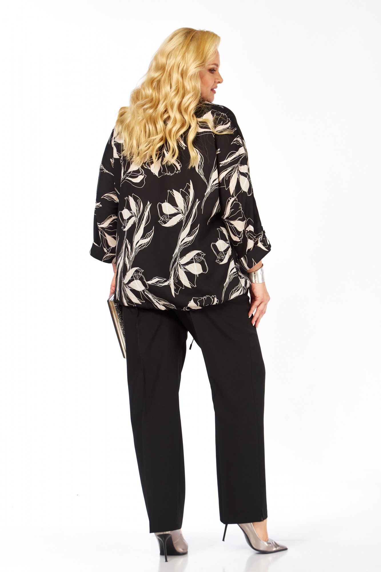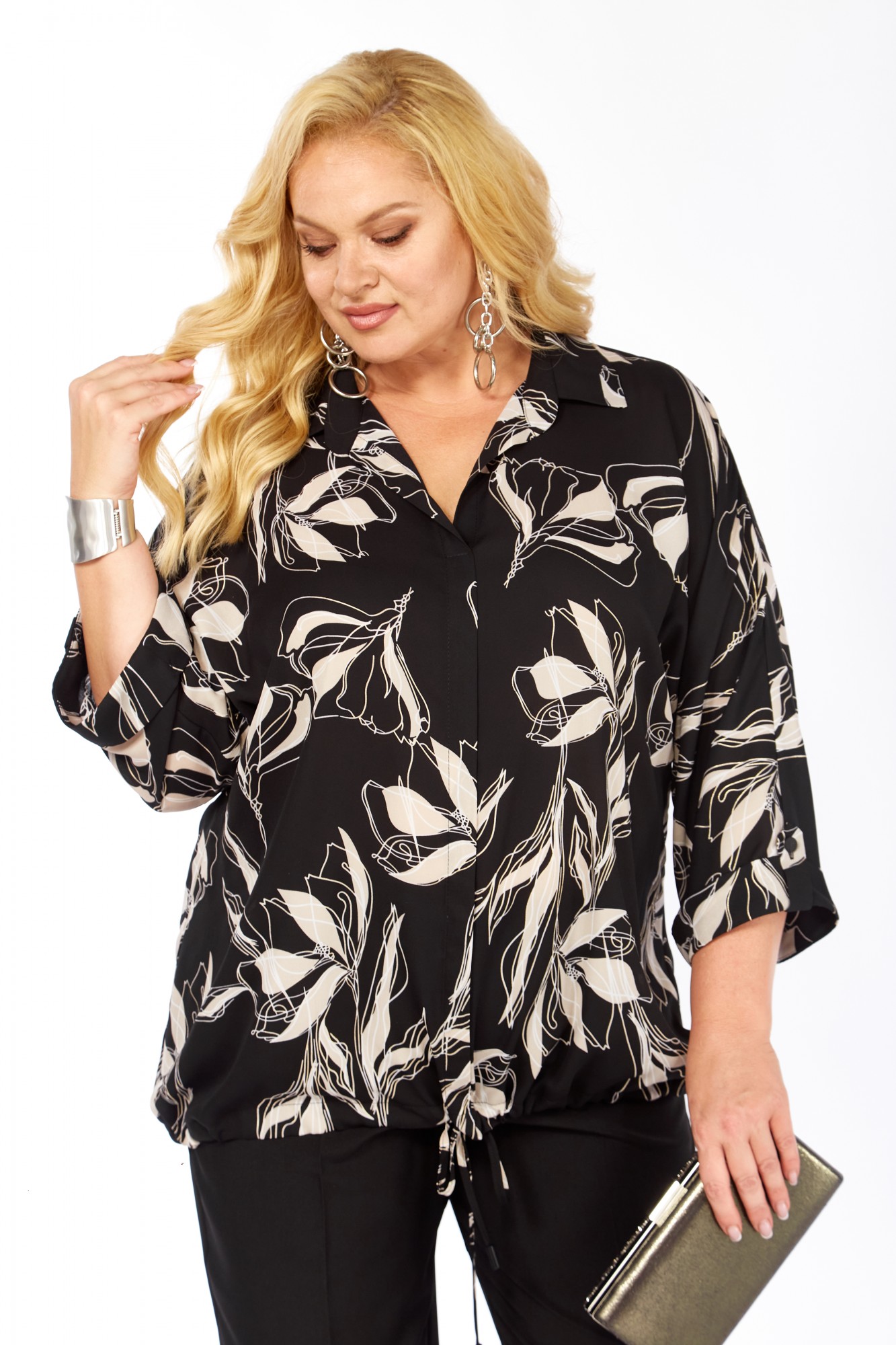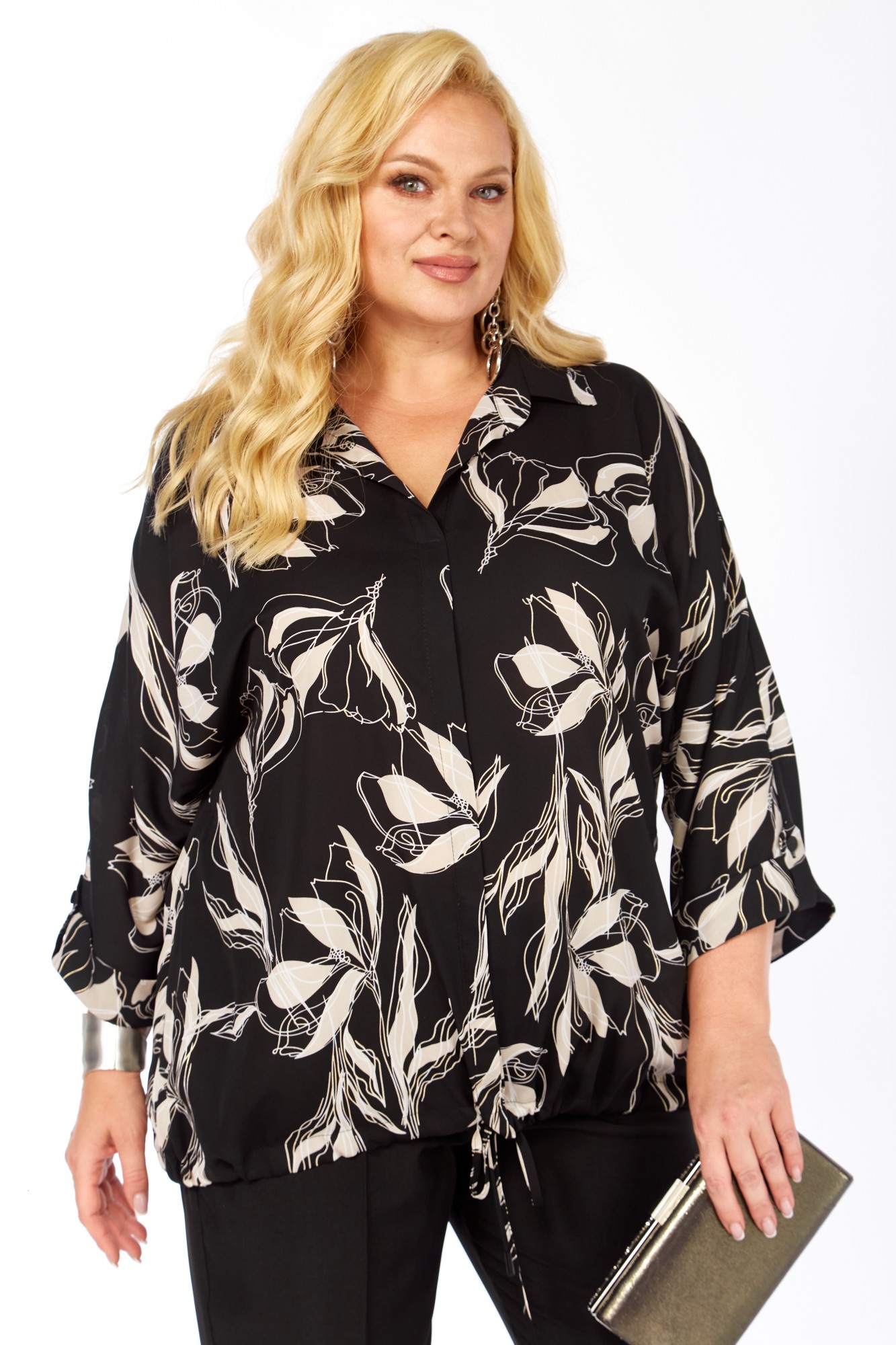 Блузка Элль-Стиль 2416 а черный, принт цветы