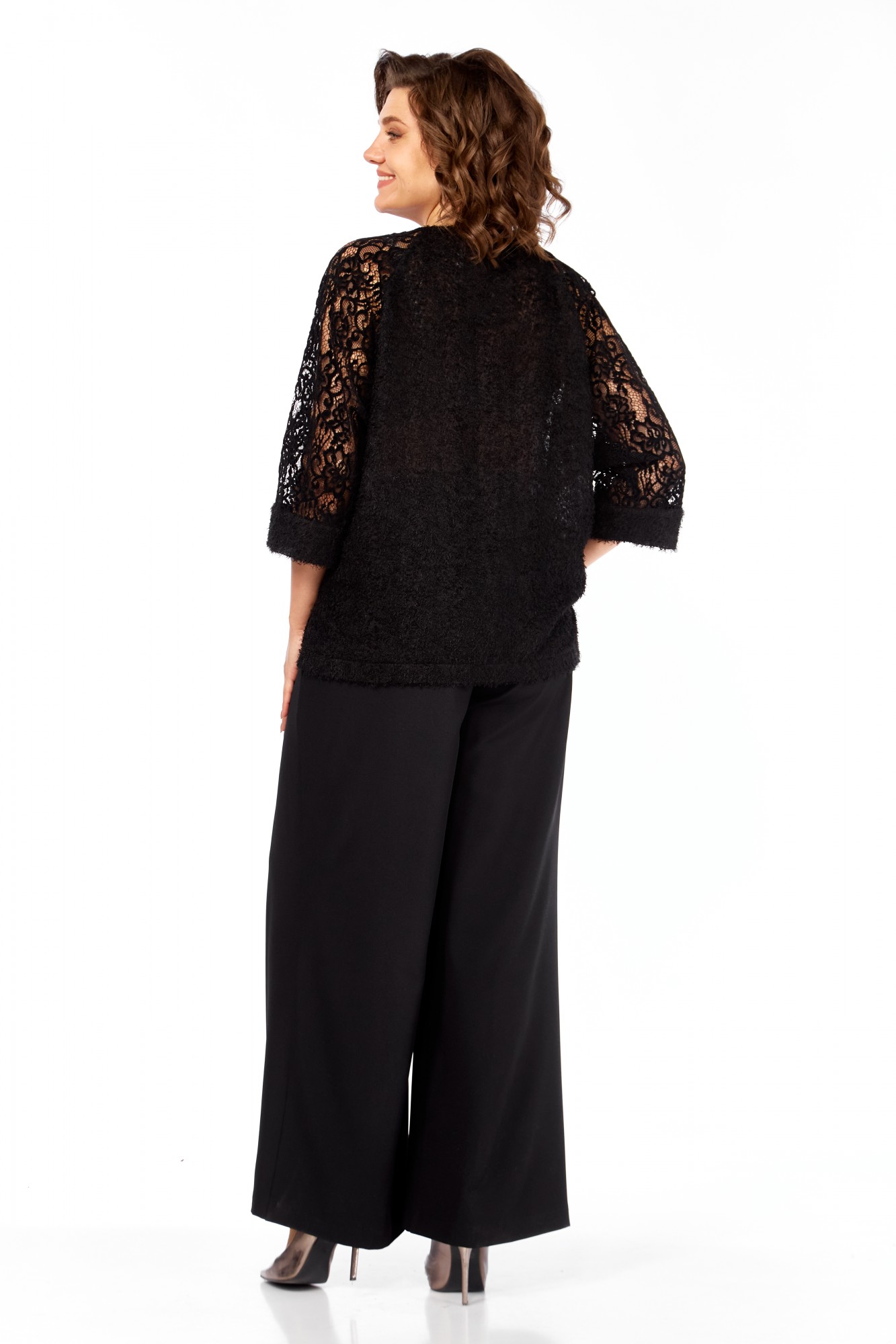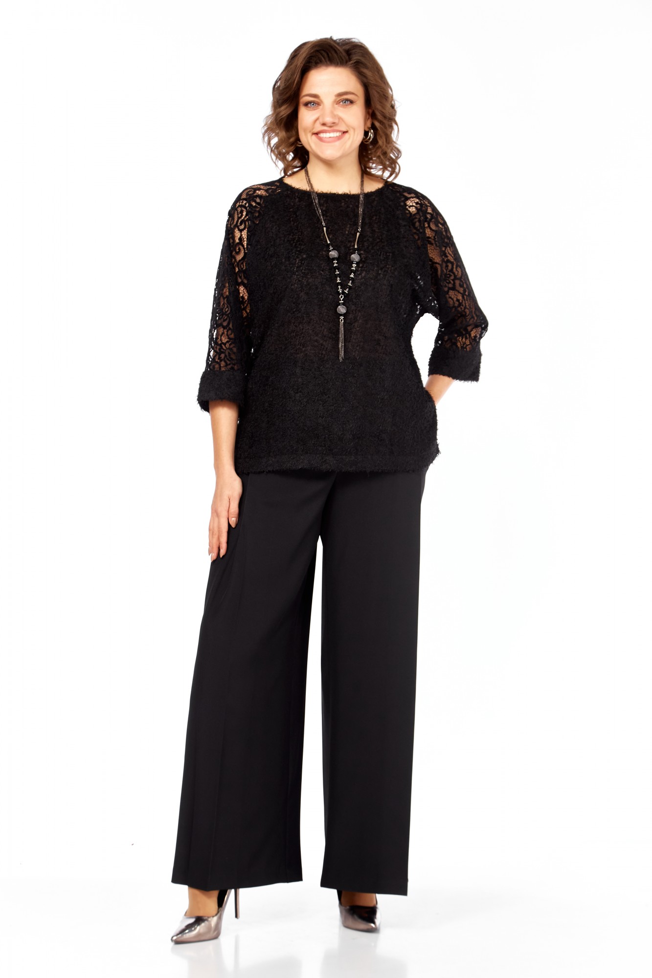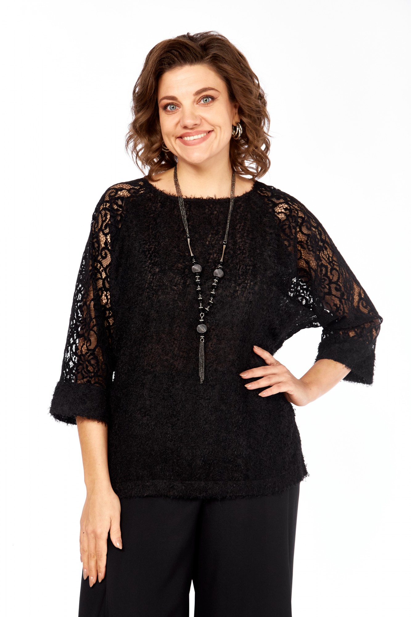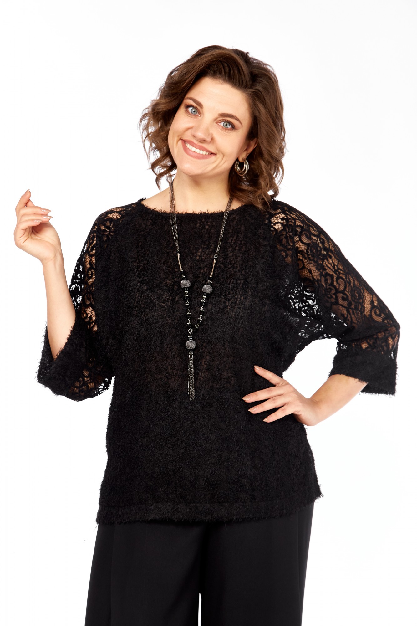 Праздничная элегантная блузка полуприлегающего силуэта, выглядит эффектно, прекрасно подойдет для вечерних мероприятий. Горловина аккуратной округлой формы. Рукав выполнен из мягкого кружева, что придает дополнительный шарм, длина 7/8. В боковых швах предусмотрены разрезы.