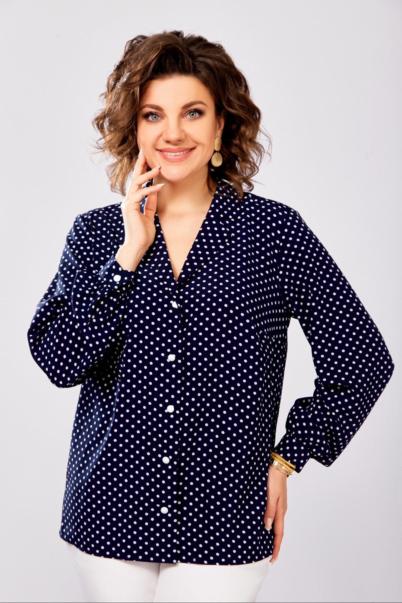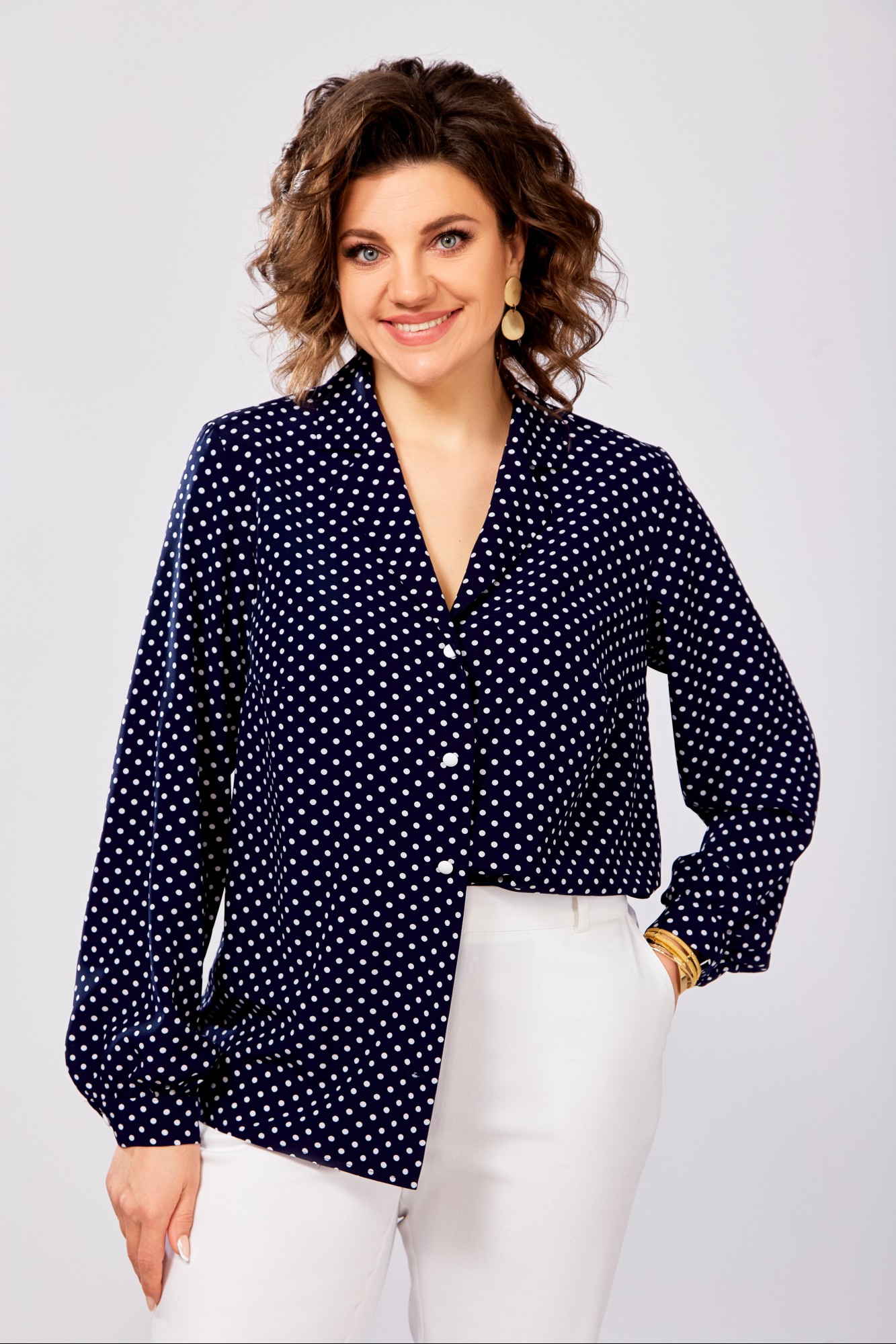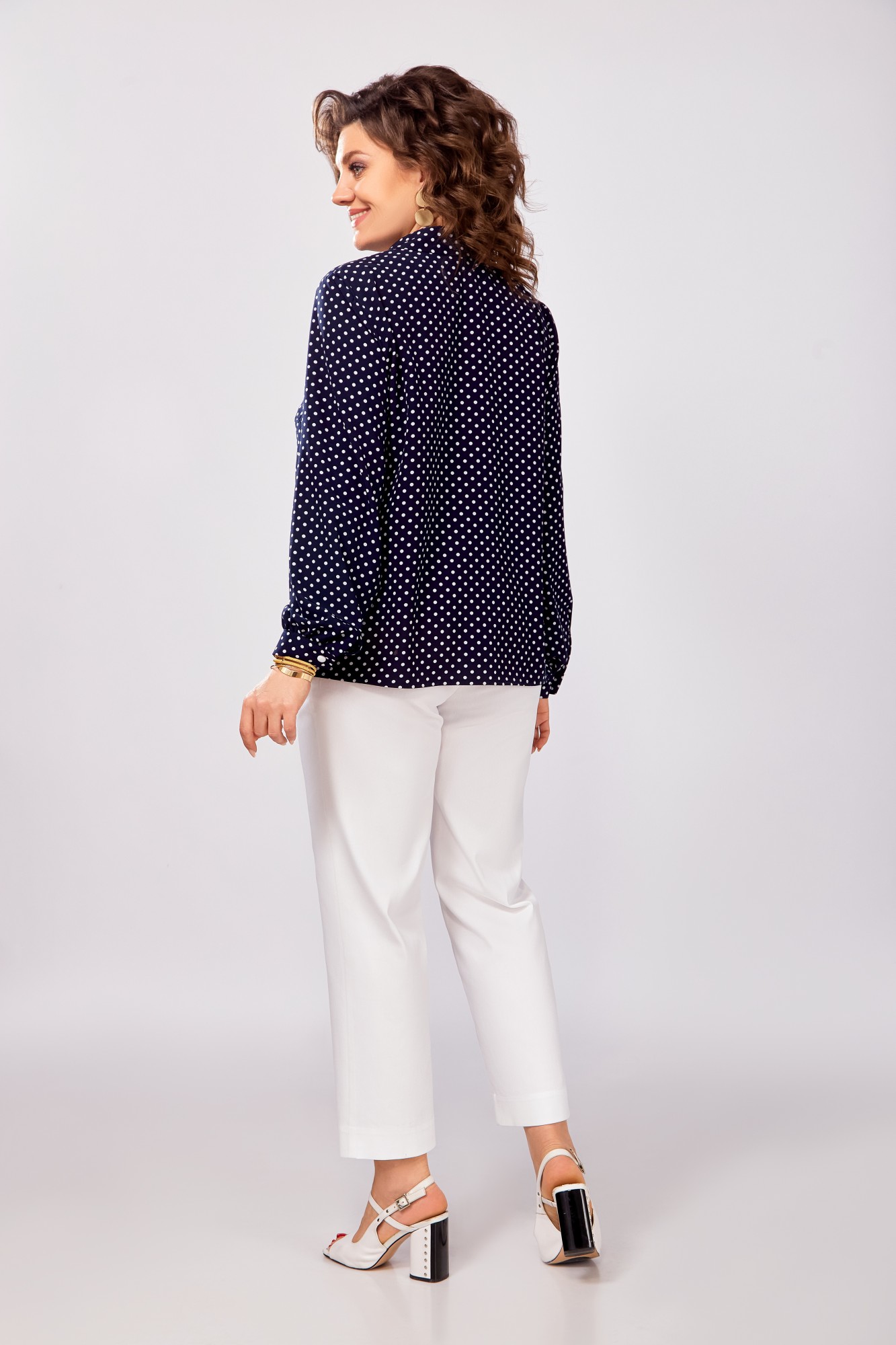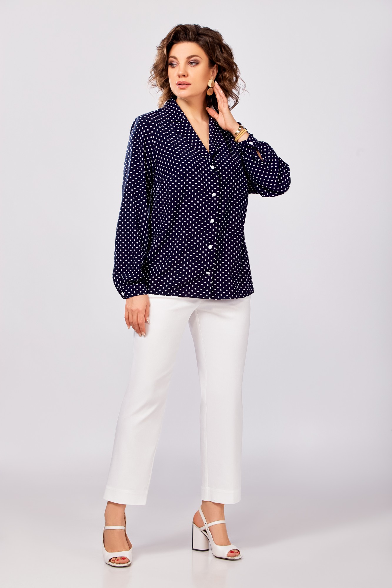Блузка женская, прямого силуэта. По переду блузы обработаны нагрудные вытачки. Воротник – пиджачного типа. Застёжка центральная на петли и декоративные пуговицы. Спинка цельнокроеная. Рукав втачной одношовный, со сборкой. По низу рукава - притачная манжета, застёгивающаяся на петлю и декоративную пуговицу. Ремень не входит в комплект. Блуза прекрасно сочетается с брюками Модель 305,342.
