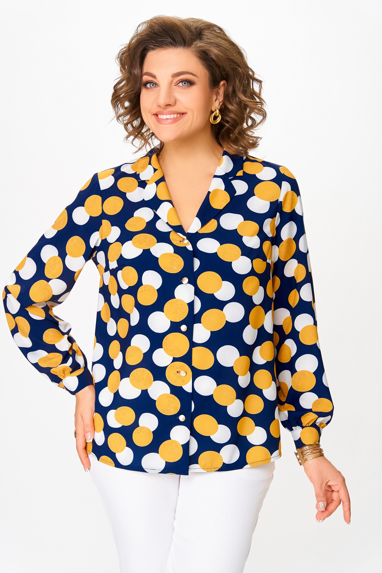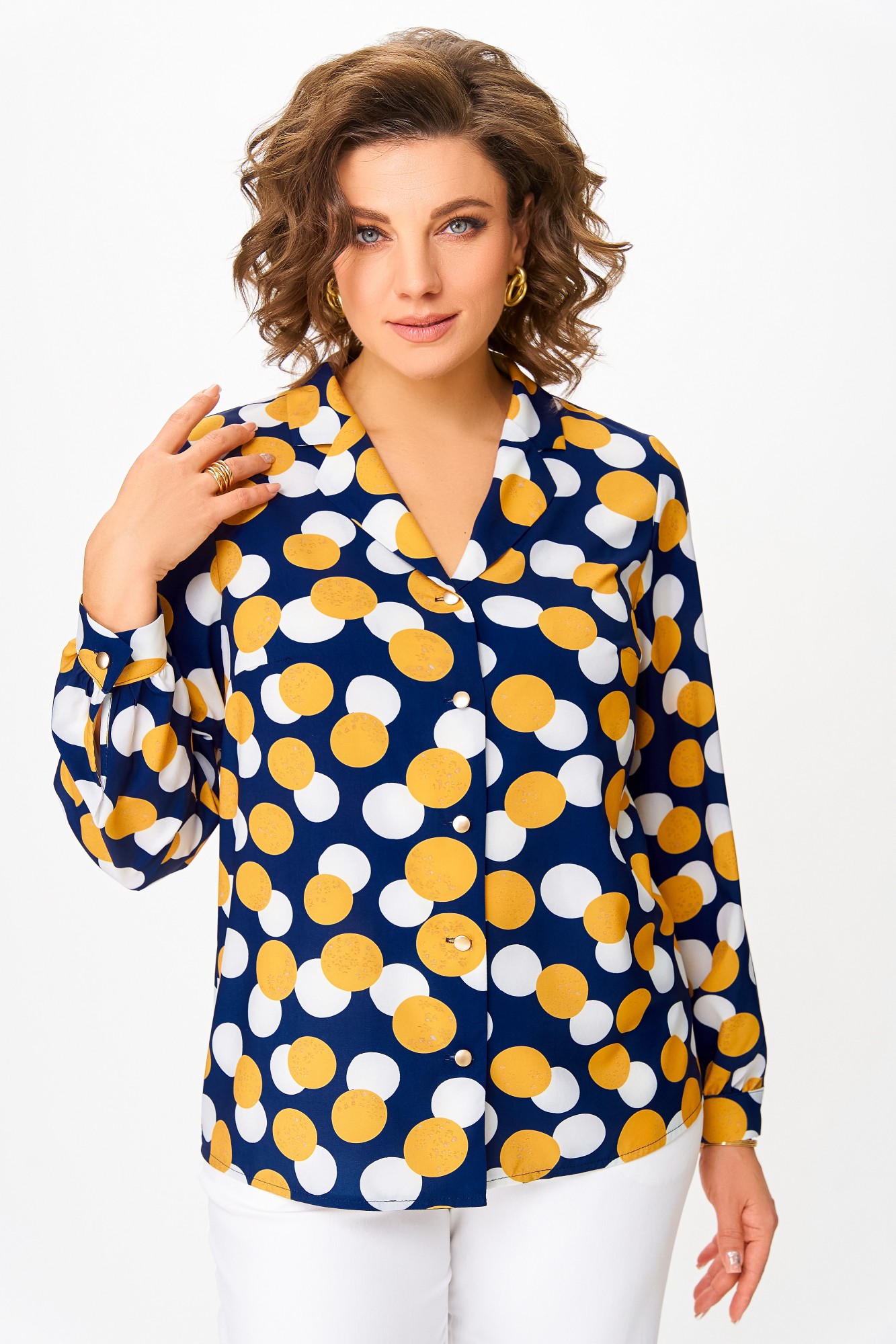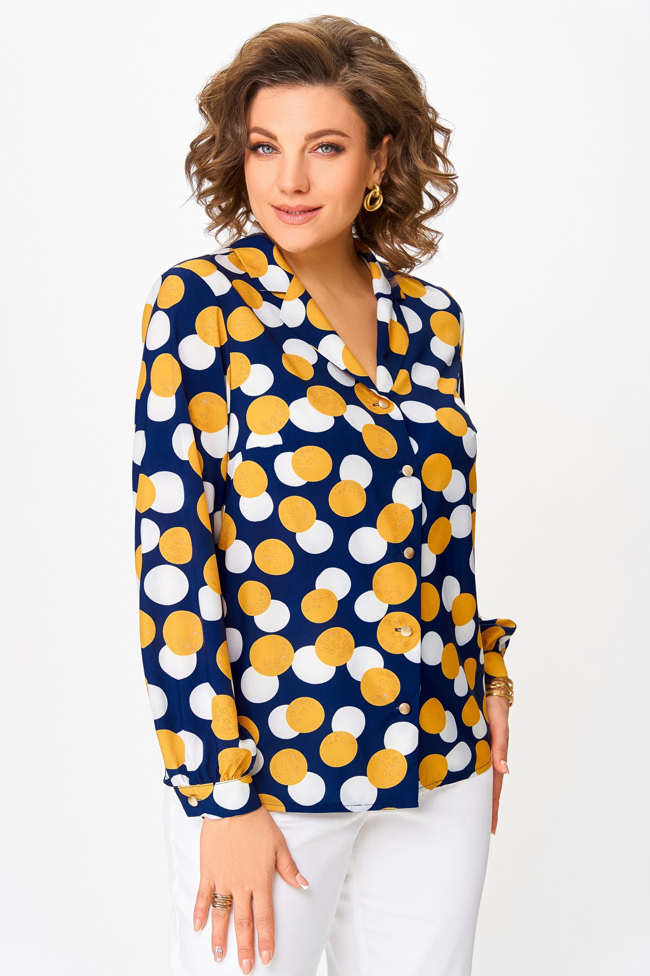 Блузка Swallow 842 .3 Синий, принт горчичные и молочные круги