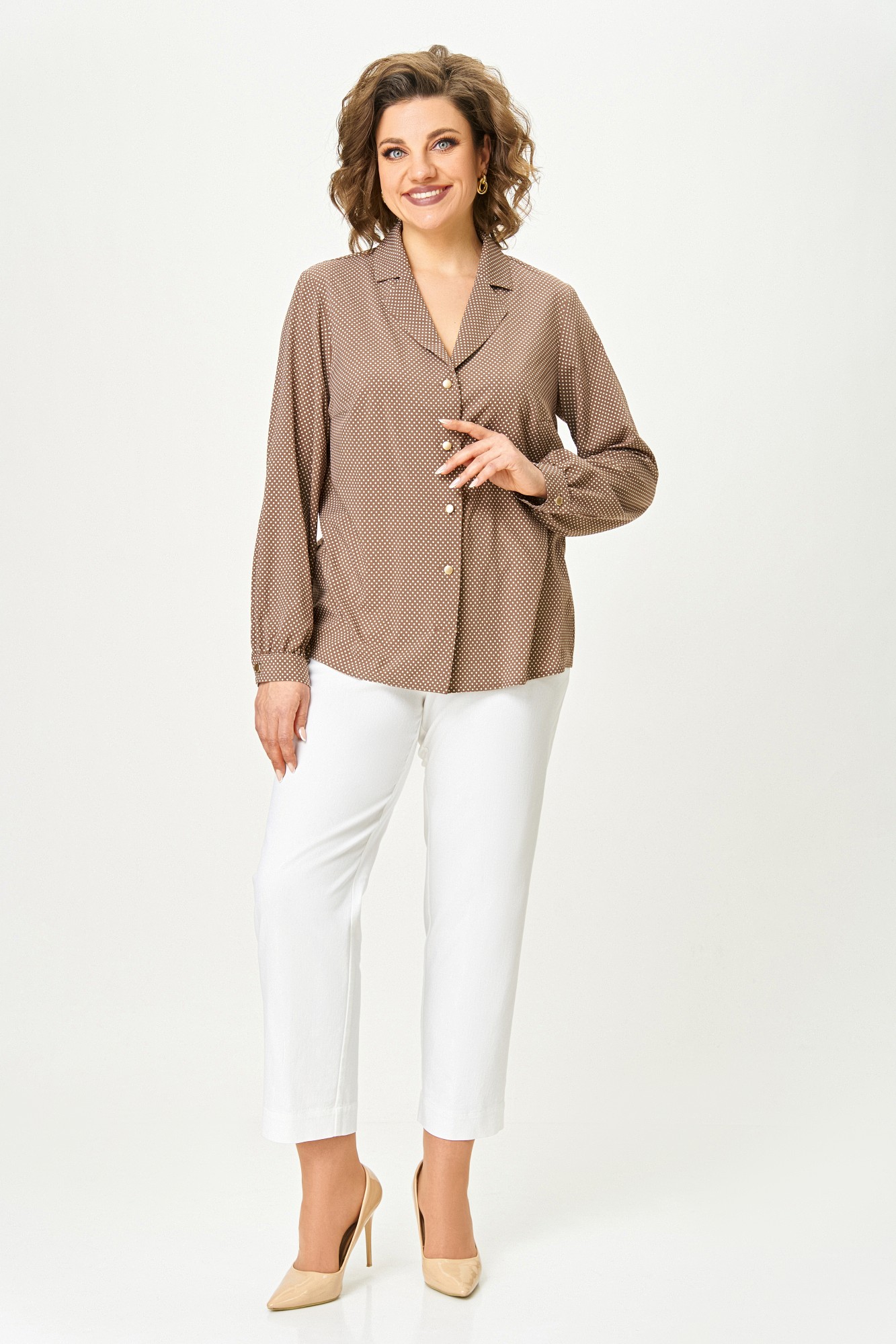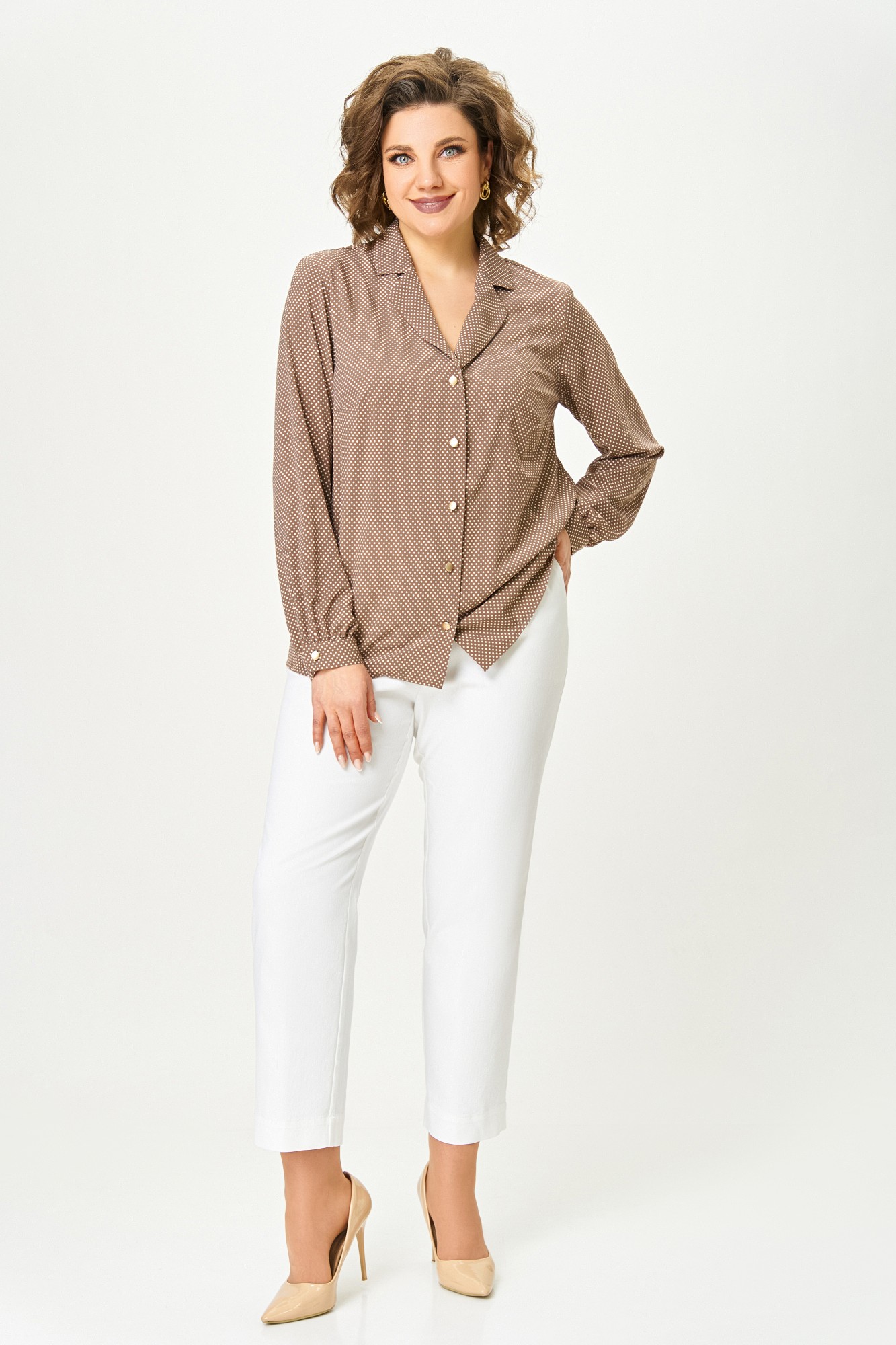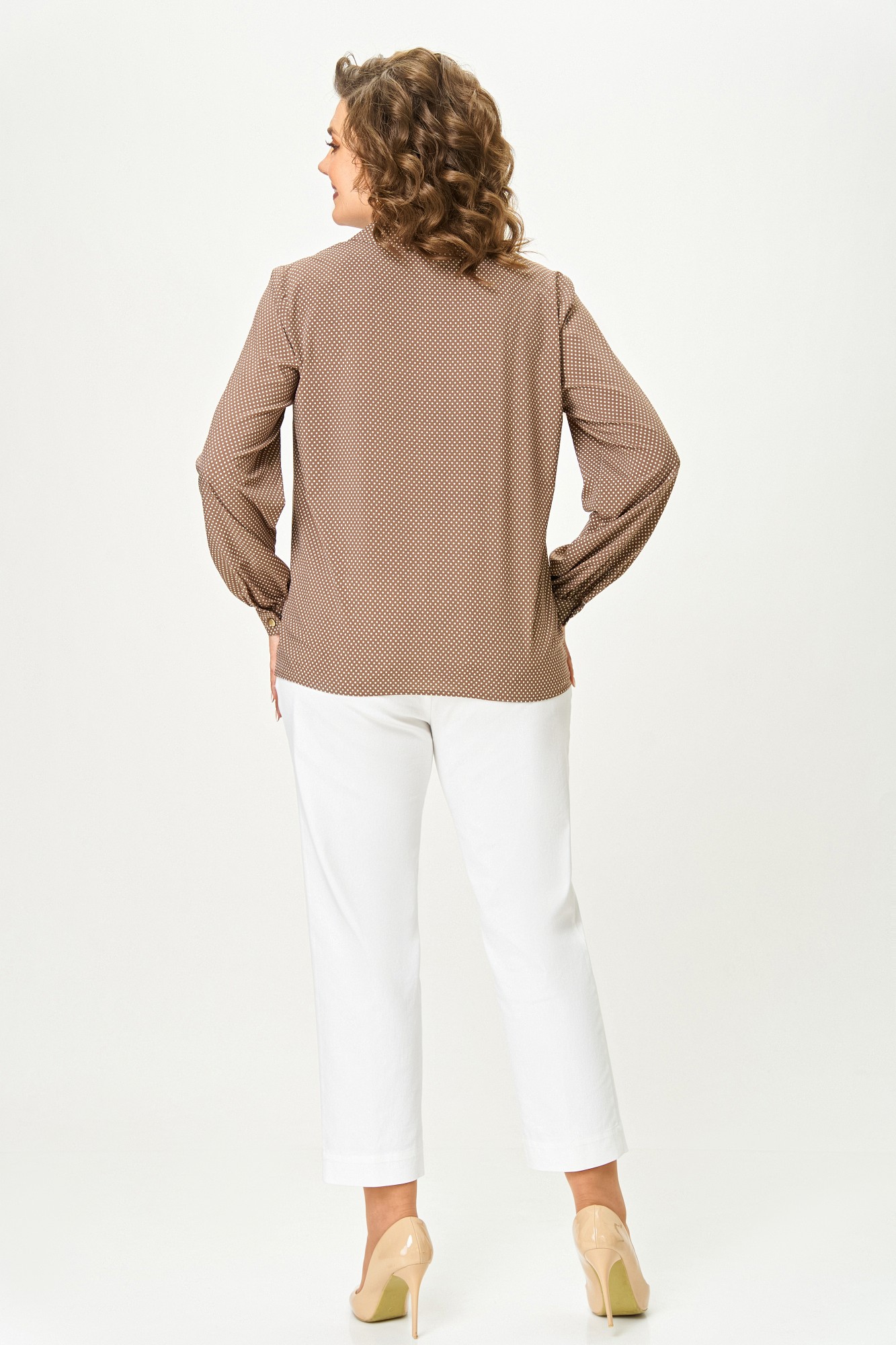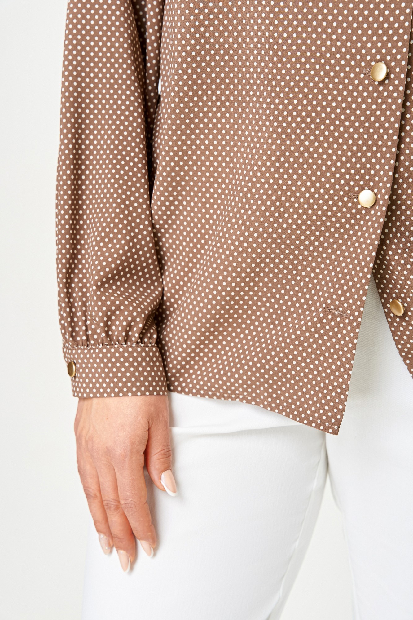 Блузка Swallow 842 Коричнево-бежевый, мелкий горошек