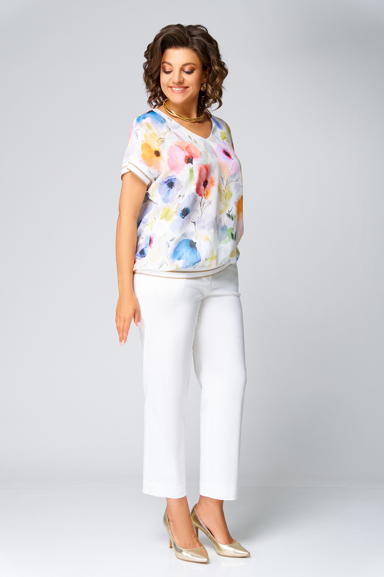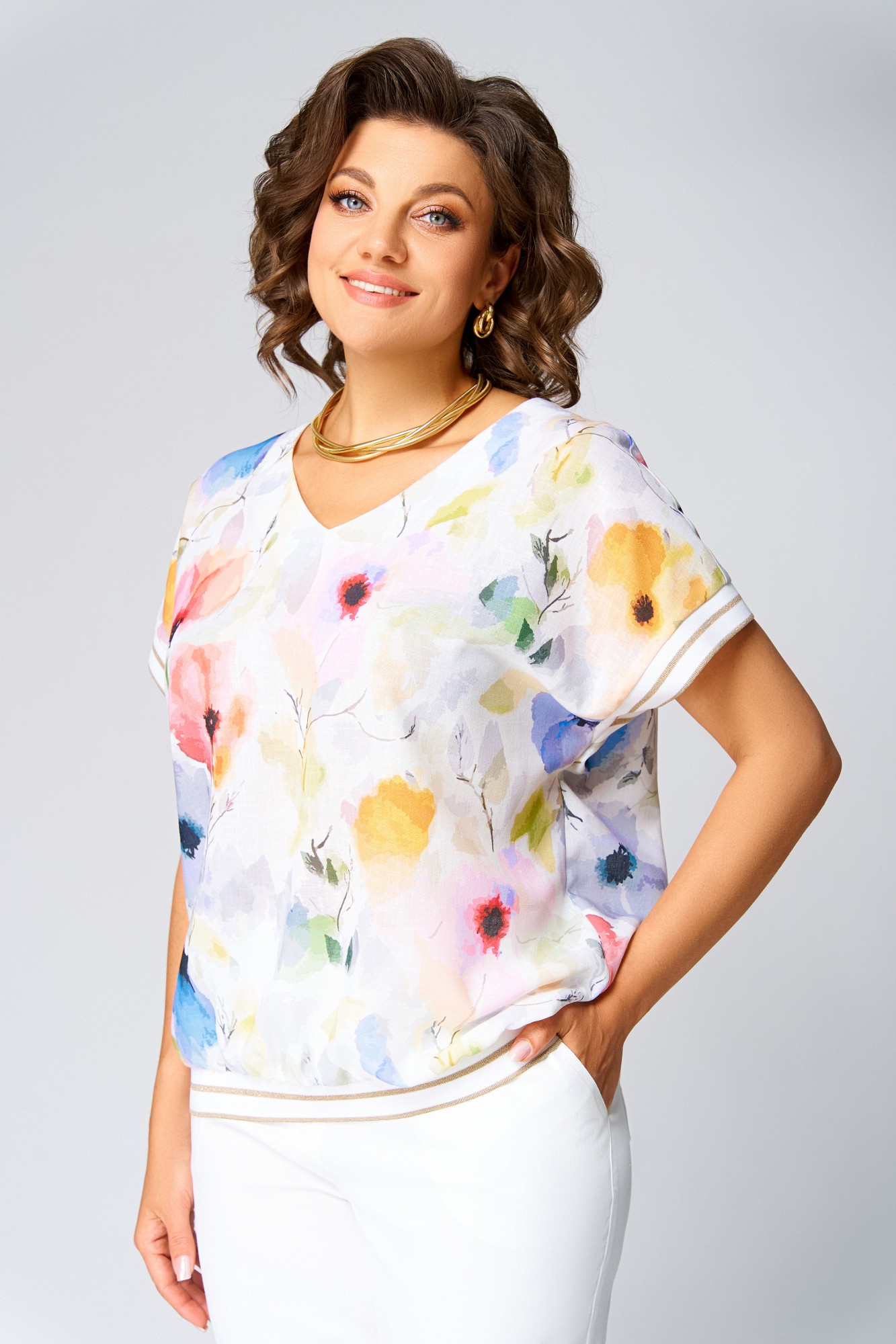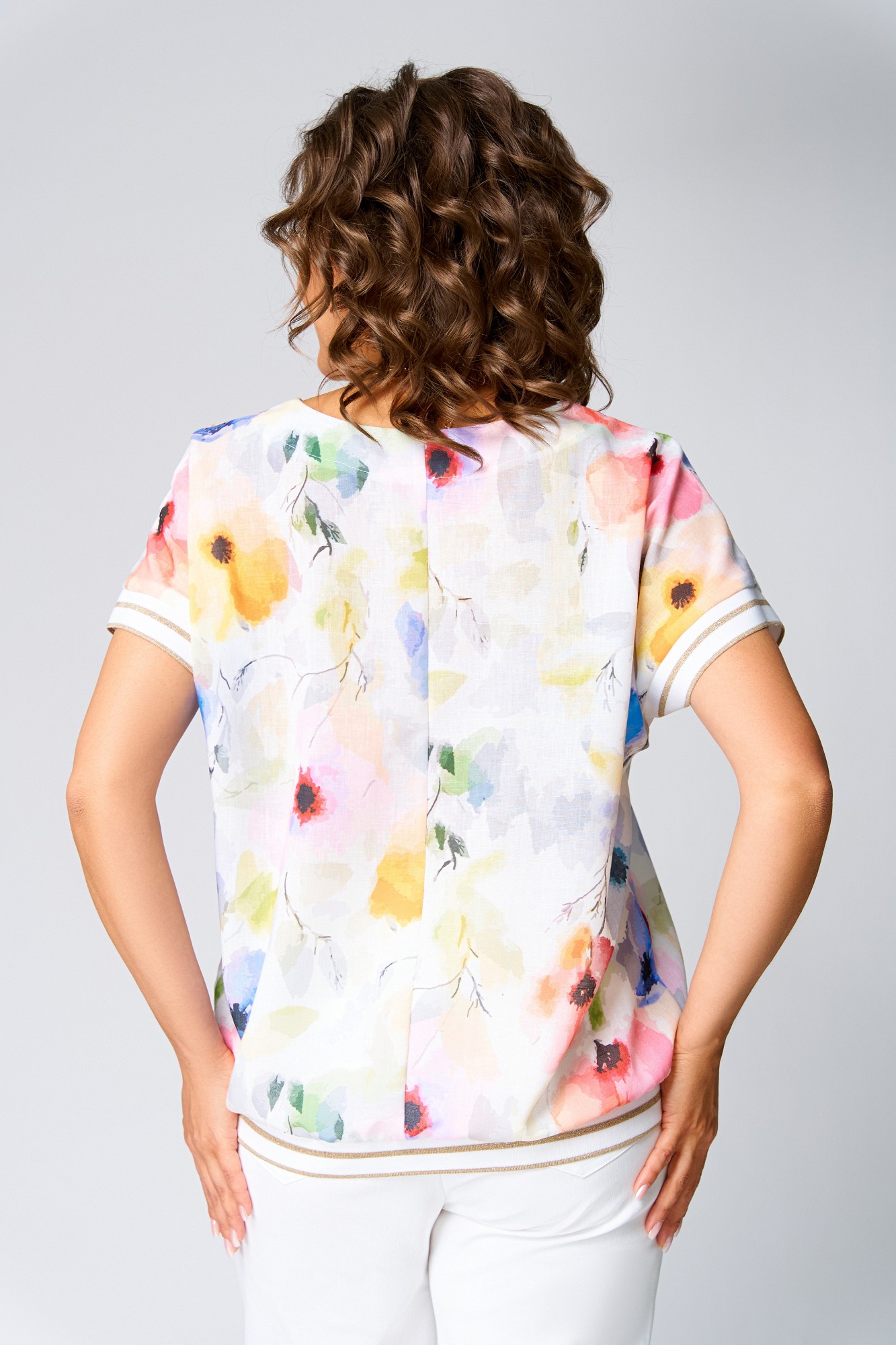 Блузка Swallow 857 Молочный, принт акварельные цветы с ID товара 428840
