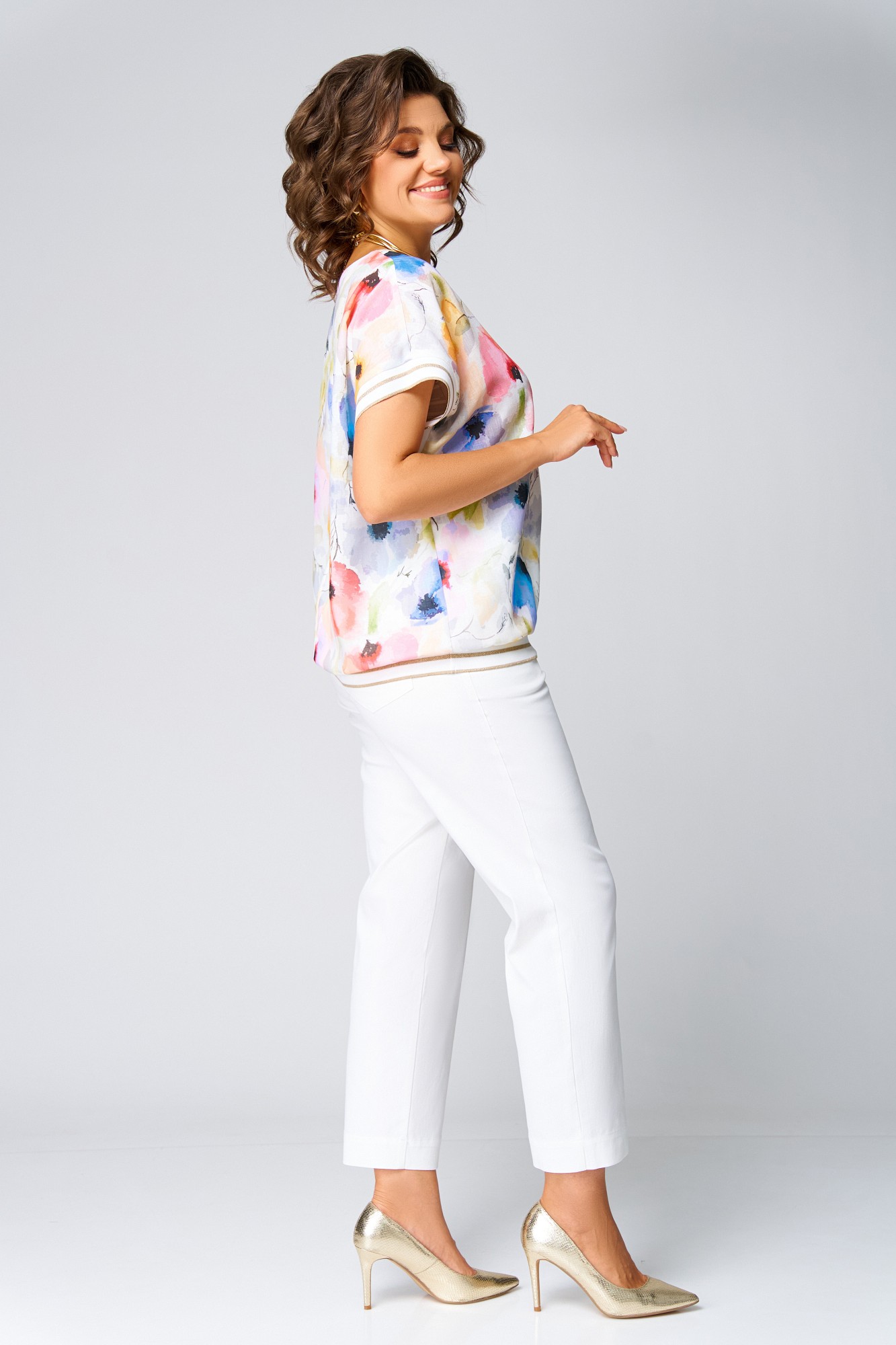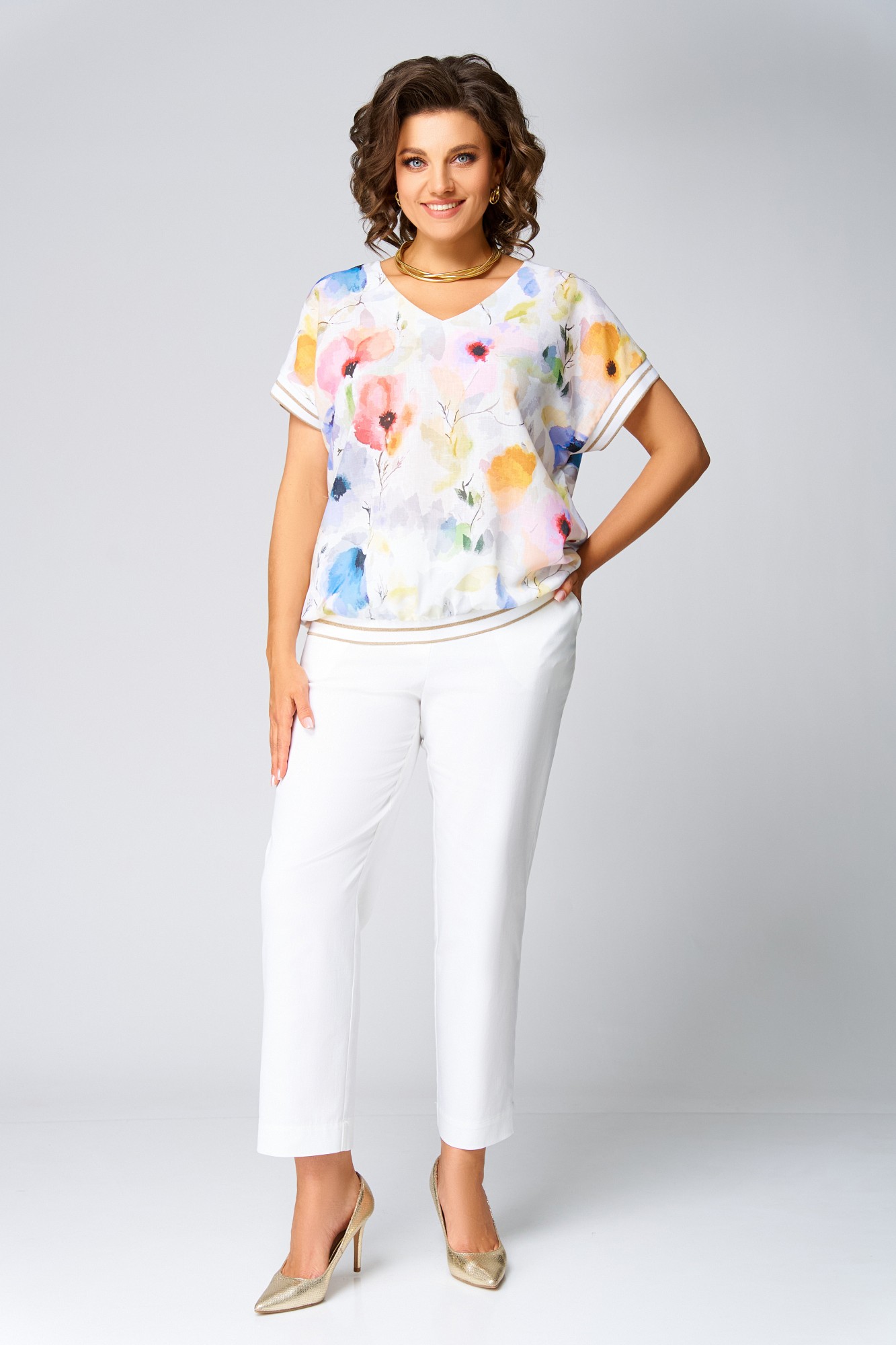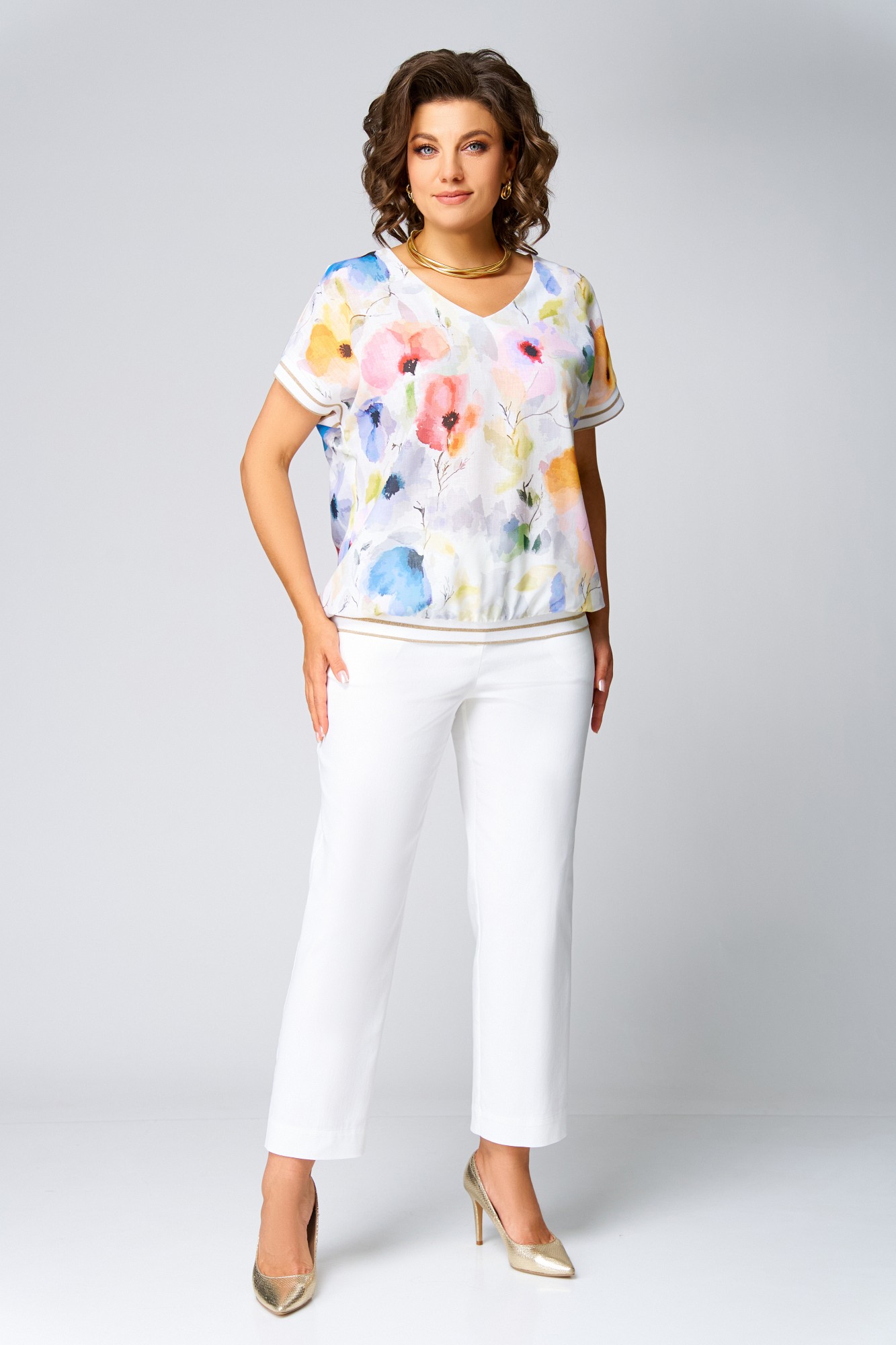 Блузка Swallow 857 Молочный, принт акварельные цветы с ID товара 428840