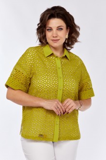 Блузка женская прямого силуэта на центральной застежке на петли и пуговицы. Перед с нагрудными вытачками от боковых швов. Спинка цельнокроеная. Рукав втачной одношовный длинный по низу со сборкой и на манжете, застегивающемся на петлю и пуговицу. Горловина на стойке с воротником, который застегивается на петлю и пуговицу.