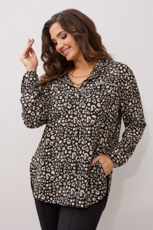 Блуза из легкой ткани (не просвечивается). Длинный рубашечный рукав со складкой, на манжете и застежкой на одну пуговицу. По спинке кокетка с двумя выходящими складками. По переду накладные карманы с отделкой по верхнему краю. Воротник рубашечный с отрезной стойкой. Низ разноуровневый закругленный.