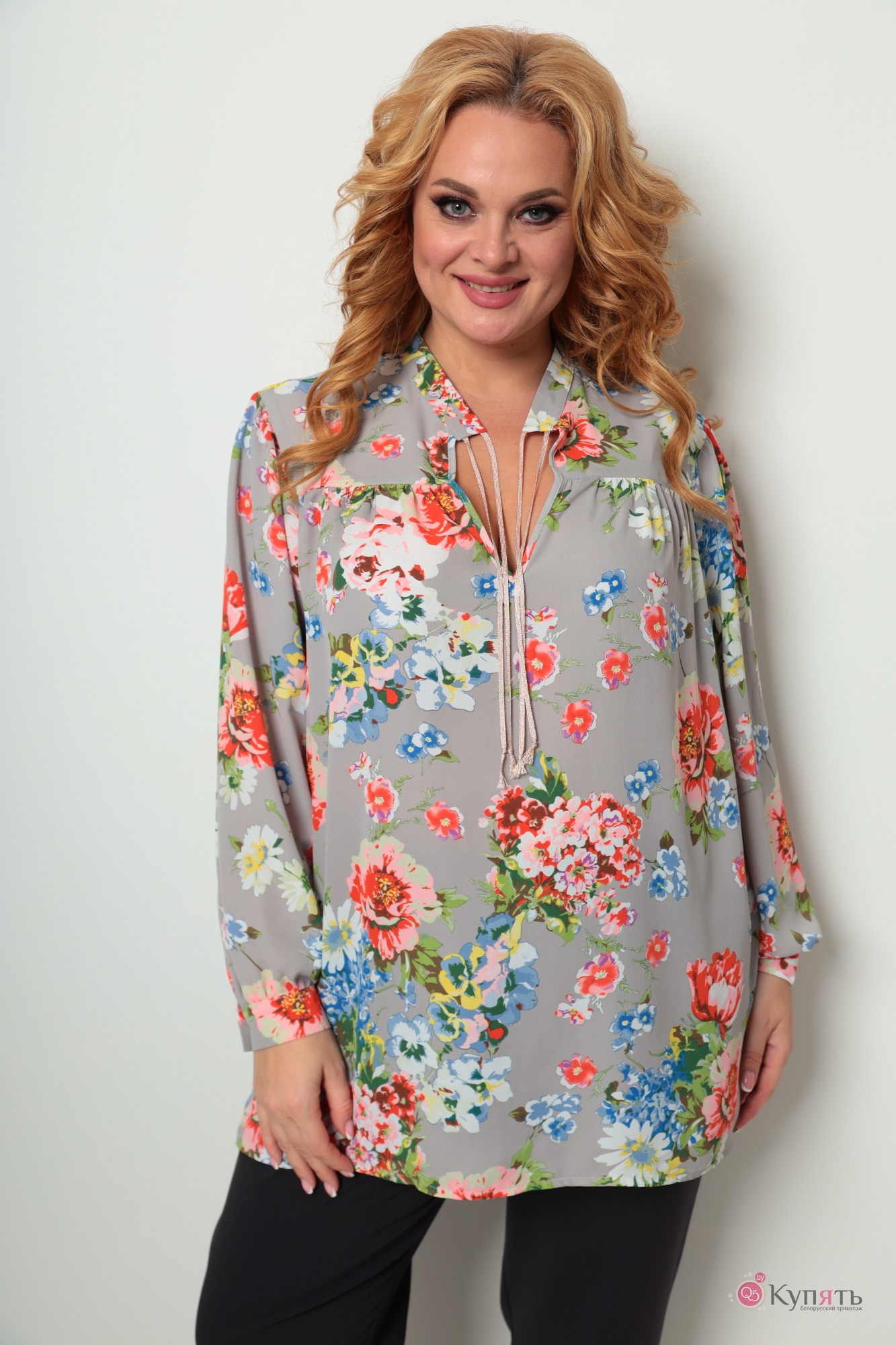Блузка Michel Chic 760 серый, цветочный принт с ID товара 305500