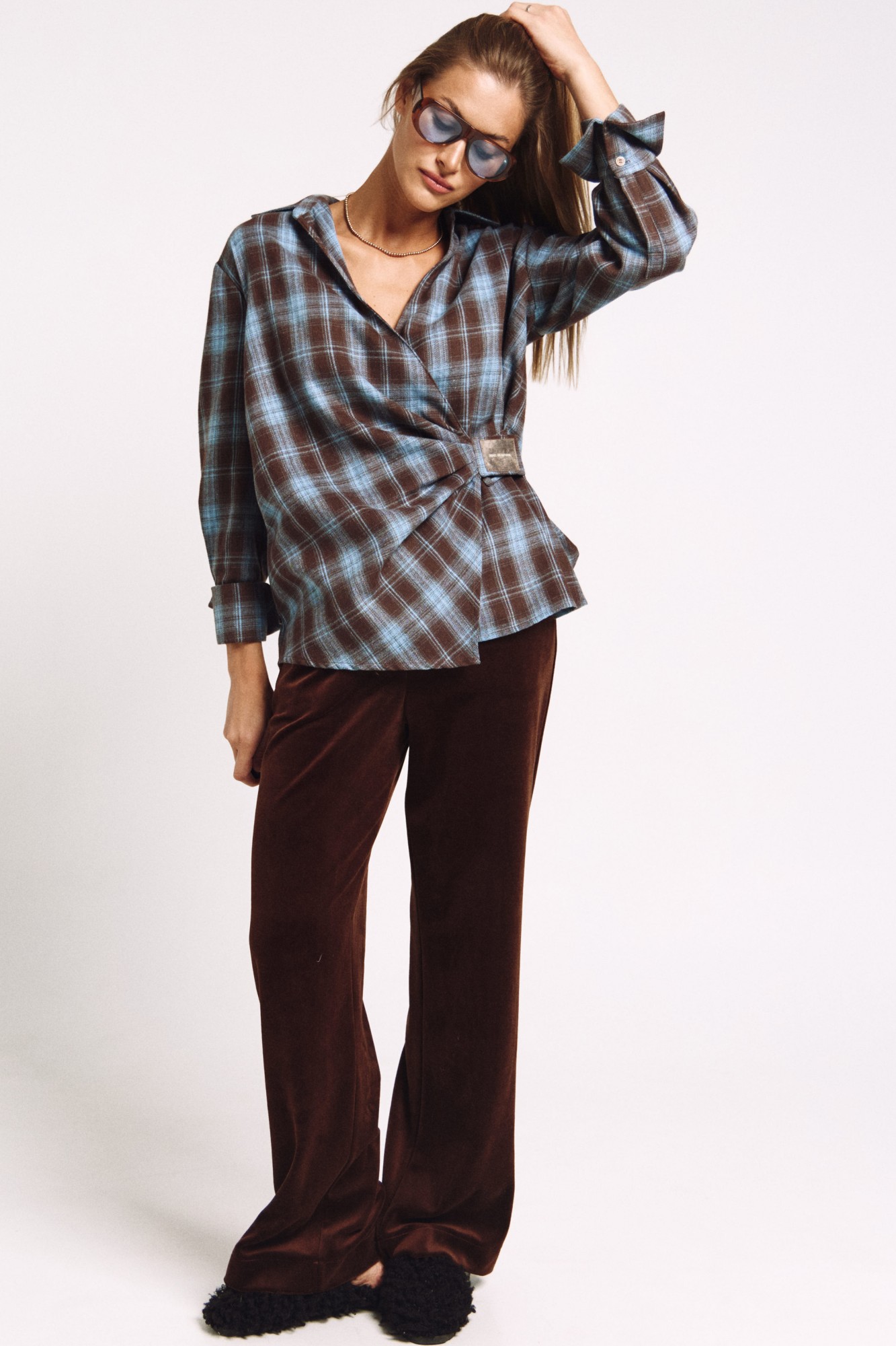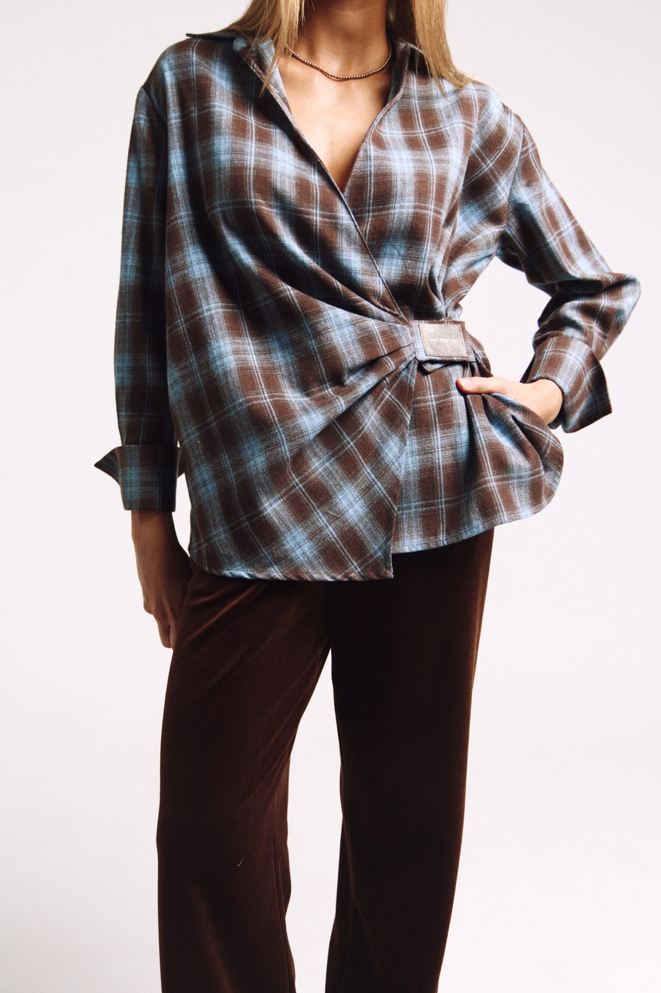 Рубашка из мягкой хлопковой фланели с асимметричной застежкой на "липучке", и декоративными складками. Свободный силуэт. Два универсальных размера - S (соответствует 42-44-46), L (соответствует 48-50-52).