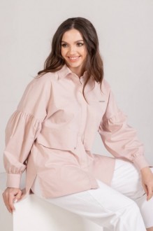 Блузка женская прямого силуэта, со спущенными плечами, выполнена из блузочной ткани. По переду горизонтальные подрезы, декоративные клапаны и потайная застёжка на 7 пуговиц и одну кнопку. По спинке кокетка и бантовая складка. Воротник отложной на стойке. Рукава со сборками на манжете, которые застёгиваются на две кнопки.