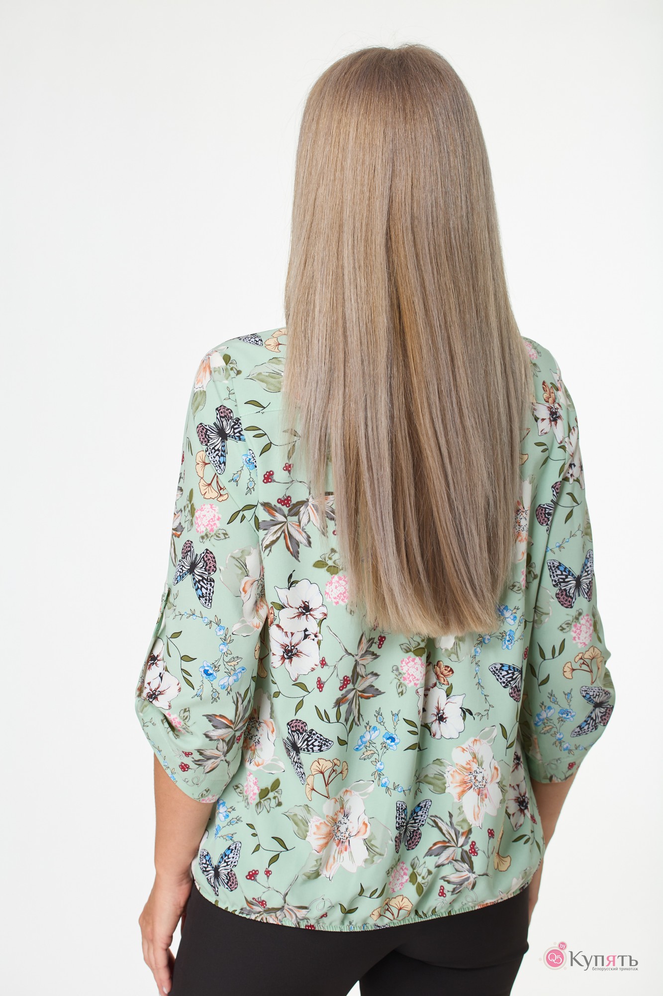 Блузка MODEMA 214 /7 - бабочки и цветы на мятно-зеленом фоне с ID товара 283393